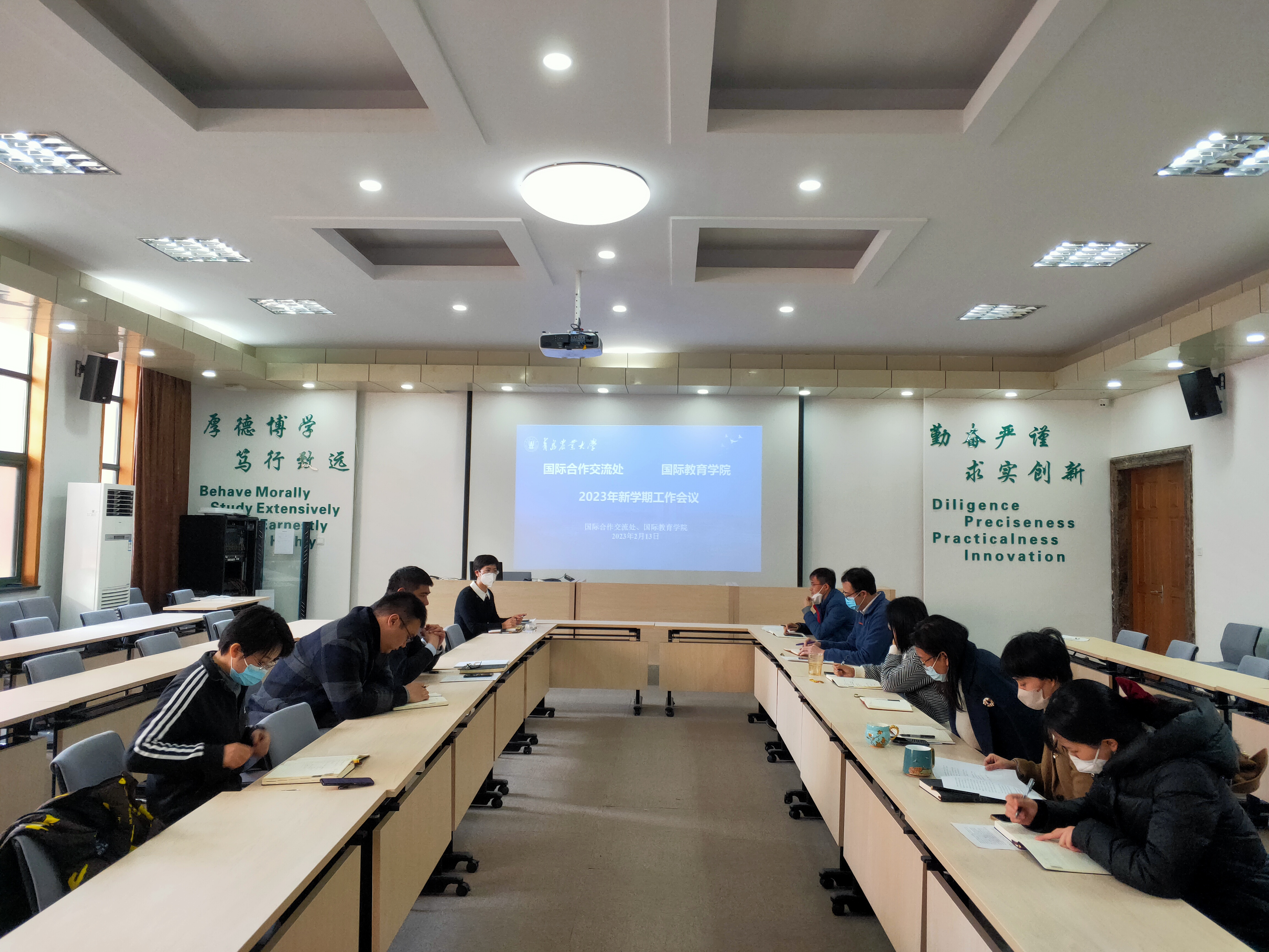 2月13日,太阳成集团tyc9728、国际教育学院在专家楼115报告厅召开新学期工作部署会,会议由太阳成集团tyc9728处长、国际教育学院副院长许颖主持。