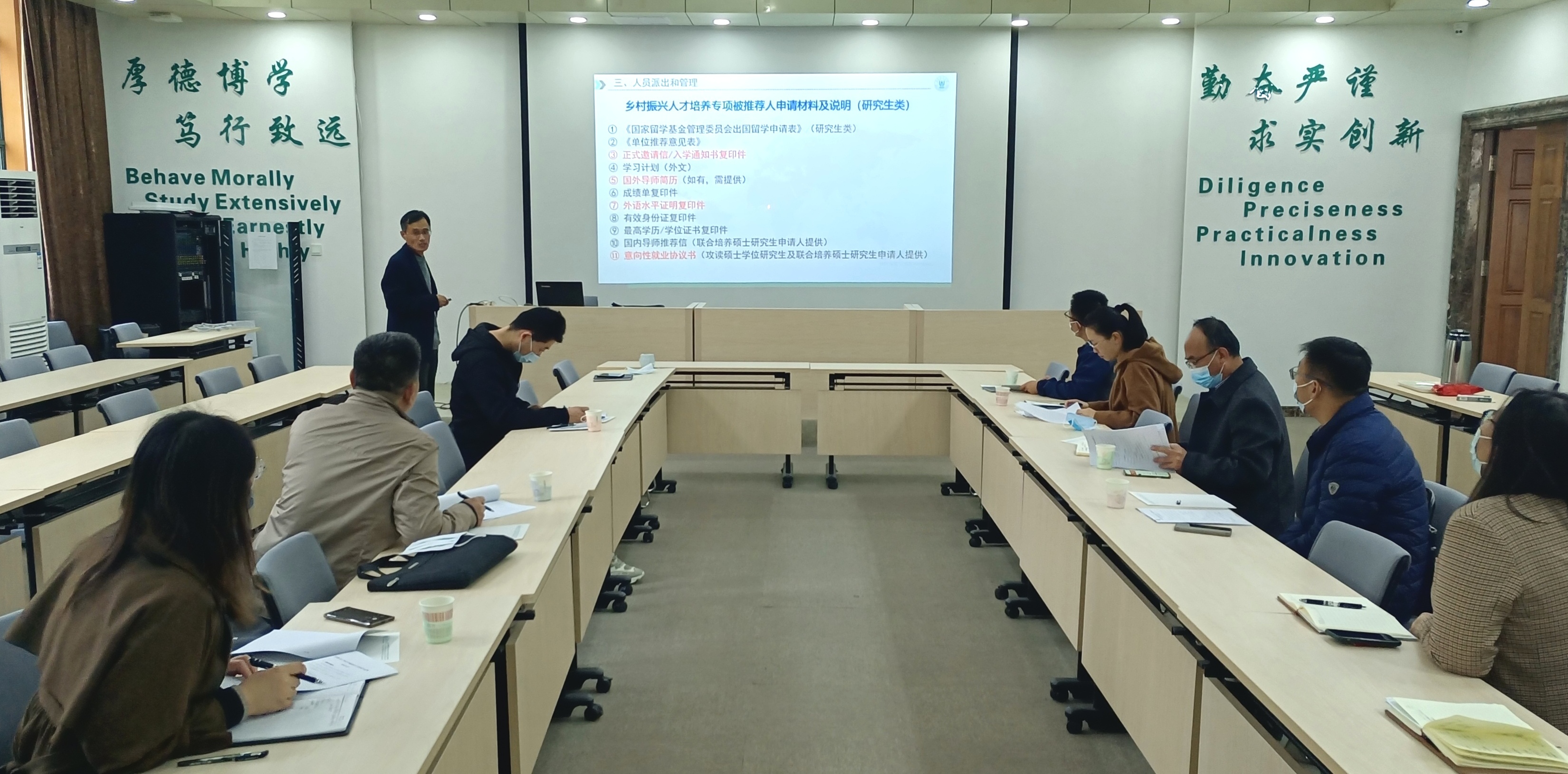 会上,王磊从乡村振兴人才培养专项简介、项目获批情况和人员选派与管理三个方面进行了详细说明,与会人员围绕项目实施过程中的收获及遇到的问题进行了深入交流。本次拟选派5名研究生和2名访问学者赴韩国首尔大学或英国皇家农业大学访学,国家留学基金委将按照访问学者和硕士研究生留学标准给予一次往返旅费及奖学金生活费资助。