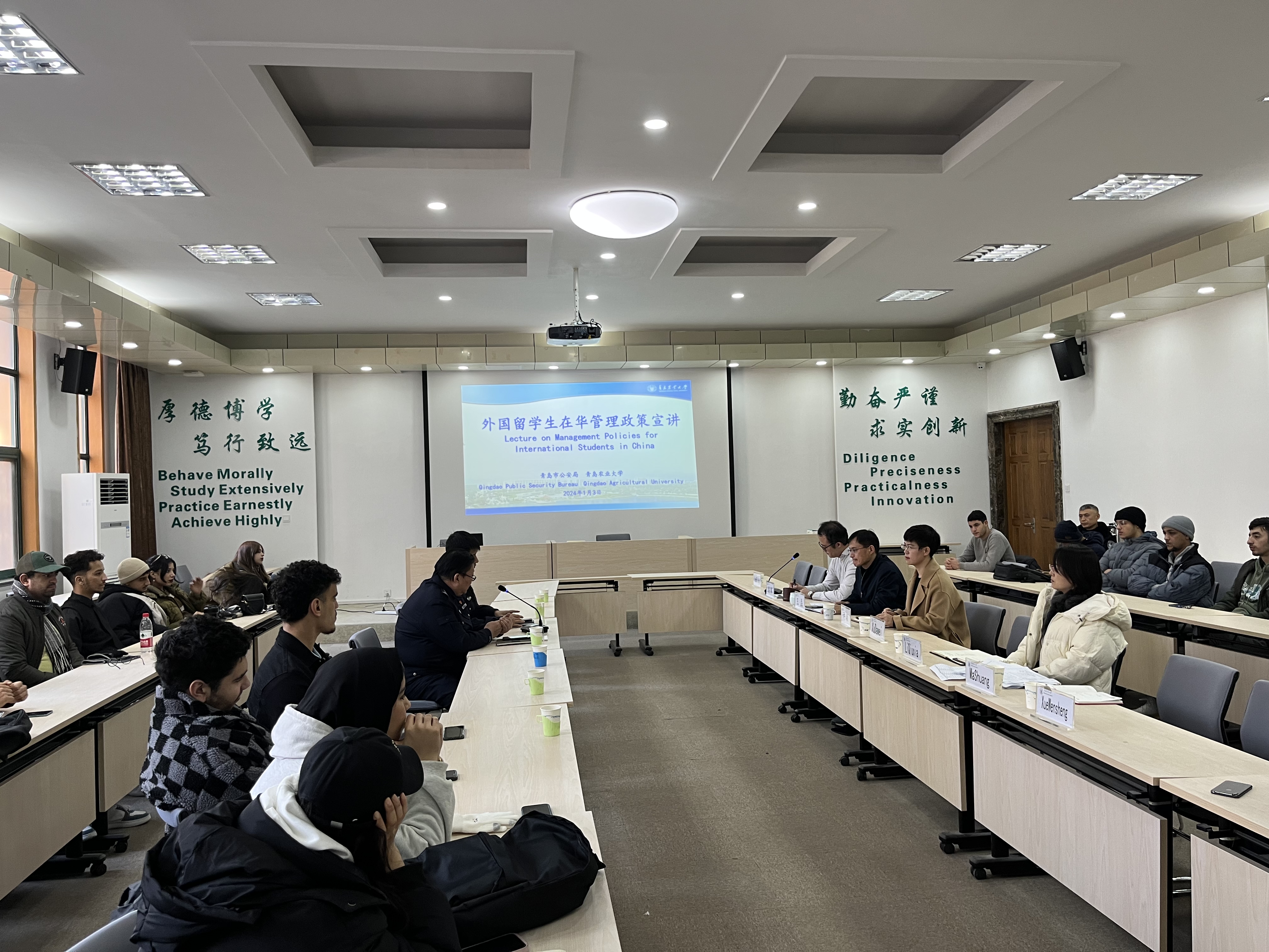 会上,牟京向在座的留学生们表示了欢迎,并详细介绍了在青居留期间外国人护照、停留居留、签证办理等政策和办理流程。李文军针对在华留学生容易出现的各类违法行为,结合案例进行了普法宣讲,要求同学们严格遵守我国的法律法规与学校的各项规章制度,做知法、懂法、守法的留学生。