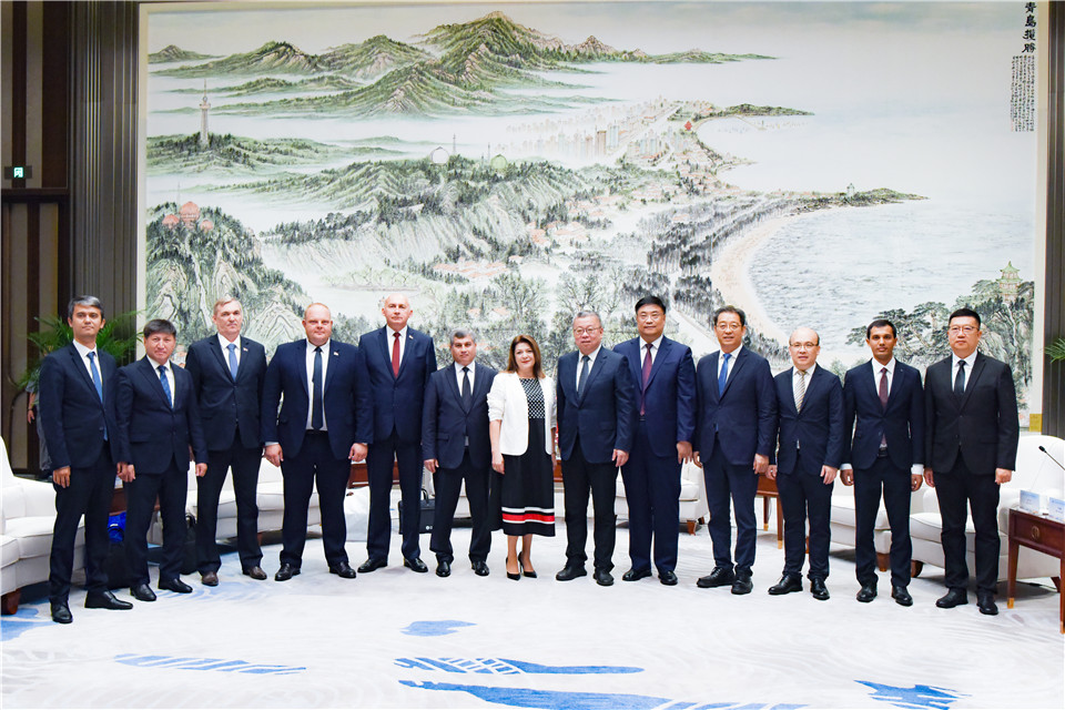 开班仪式前,青岛市政府副市长宋明杰会见了上合组织国家友好省州和城市代表一行,潘军陪同会见,并进行友好交流。