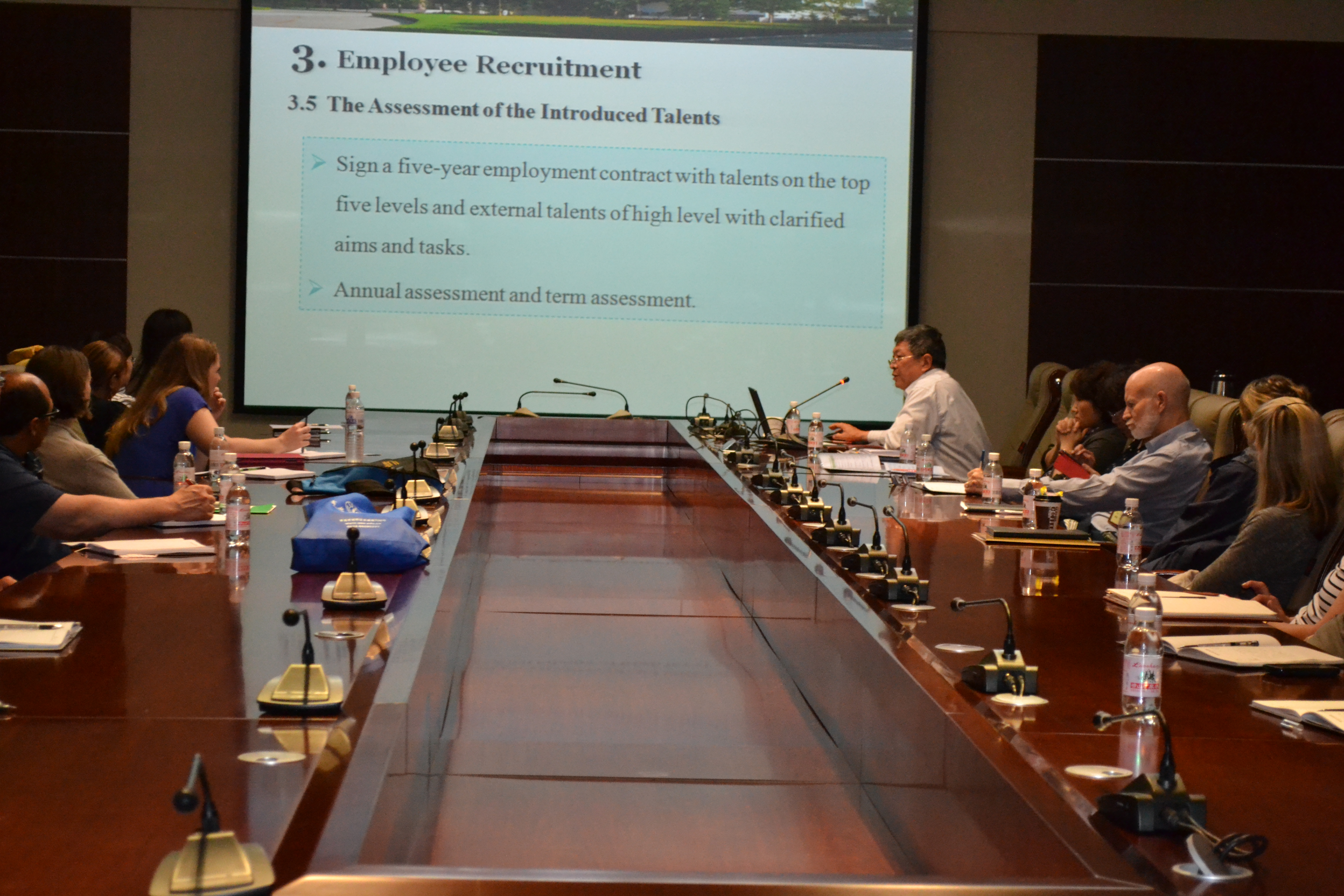 5月28日上午,9728太阳集团副校长戴洪义举行专题讲座,介绍了学校人事制度,包括招聘、评定、职称、薪资、人才引进、人才培养等各方面工作,以及学校制定的五年师资结构规划。双方就高等院校的师资聘用与任期等问题进行了交流。