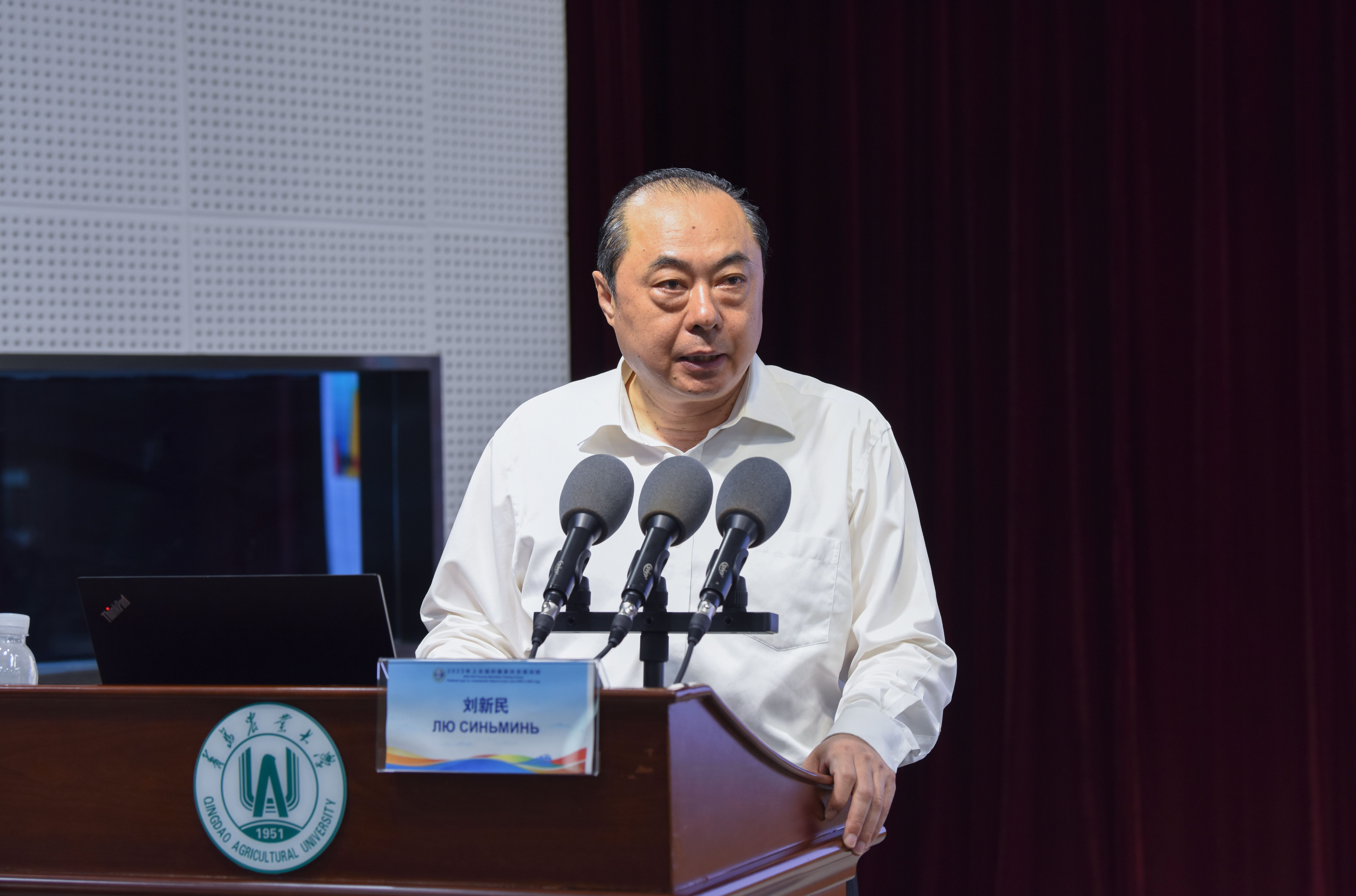 刘新民为学员们做首场题为“乡村振兴与乡村治理的中国经验”的学术报告,从中国农村改革的演变、中国乡村振兴的实践、中国乡村治理的经验、中国经验的核心观点四个方面为学员们讲述了中国农村改革和乡村振兴的背景、取得的成效。刘新民强调,没有农业农村现代化,就没有国家现代化。中国的脱贫攻坚和乡村振兴事业,既有科学的总体设计,又有丰富的地方实践;乡村振兴也要循序渐进,因地制宜,久久为功。他在报告中详细介绍了乡村振兴齐鲁样板建设的实践与成效,分享了一批典型做法和成功案例。