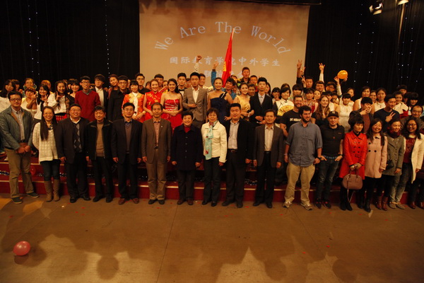 11月23日晚,国际教育学院在文经楼演播大厅举办“WE ARE THE WORLD”2014年中外学生联谊晚会。校党委副书记刘国秋、副校长原永兵,机关党委、学工部、校团委、国际教育学院负责人及外籍教师、外国留学生三百余人观看了演出。