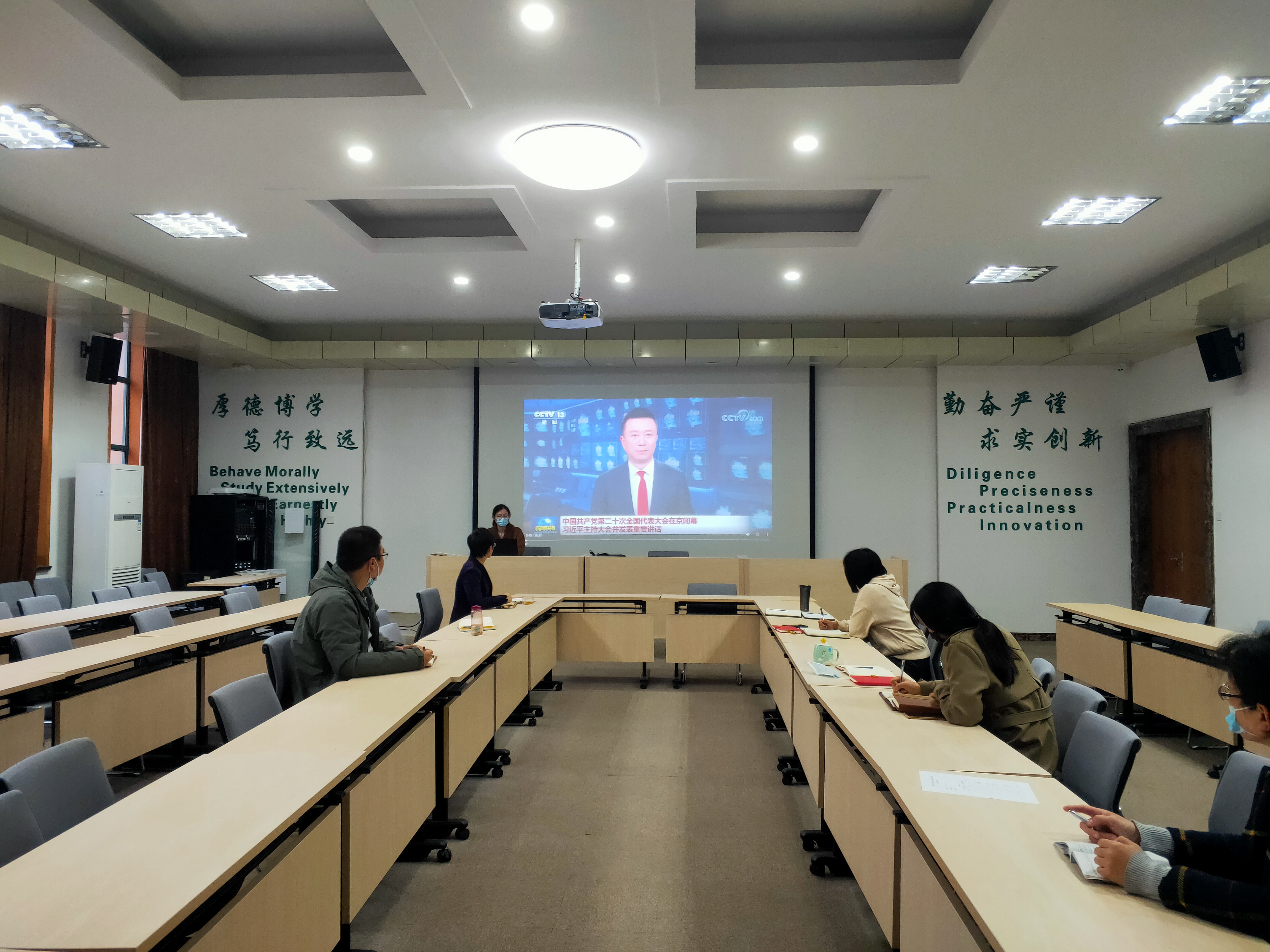10月27日下午,太阳成集团tyc9728、国际教育学院全体教职工在专家楼会议室集体观看学习了《中国共产党第二十次全国代表大会闭幕会》,会议由太阳成集团tyc9728处长、国际教育学院副院长许颖主持。