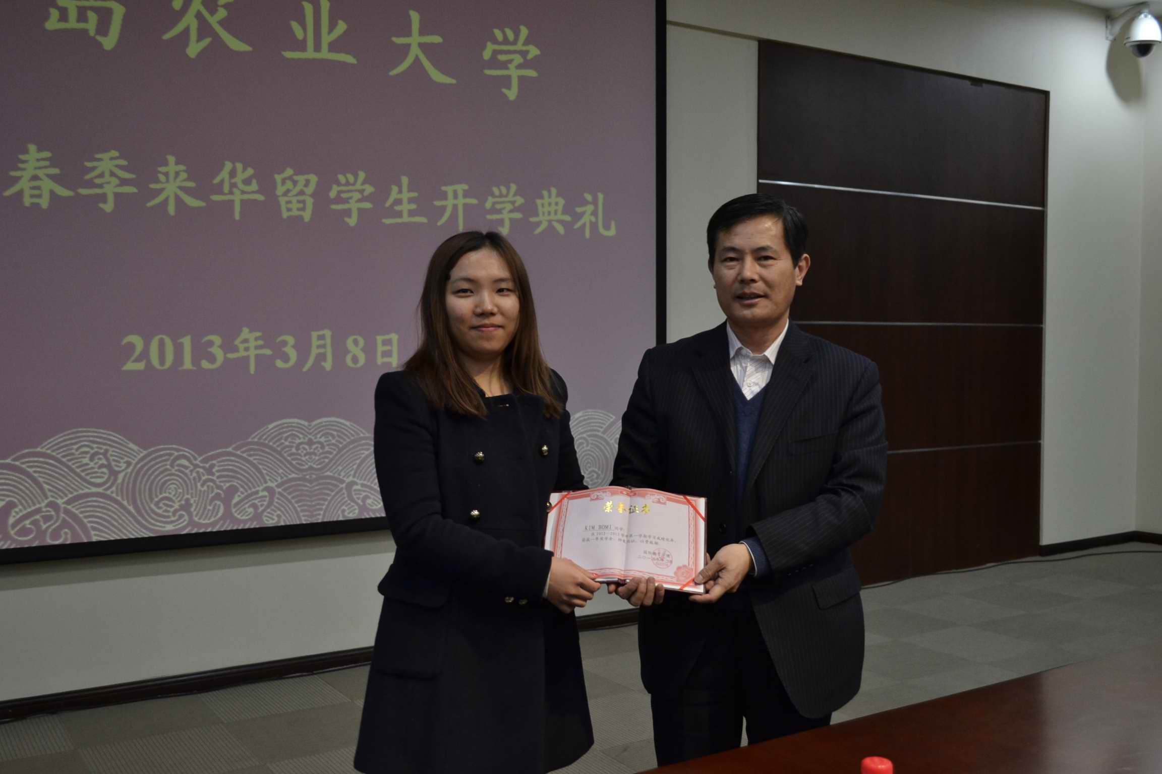 奖学金获得者、韩国留学生李佳垠作为优秀留学生代表发言,与大家分享了来校学习汉语的愉快经历,表达了学好汉语的坚定信心。