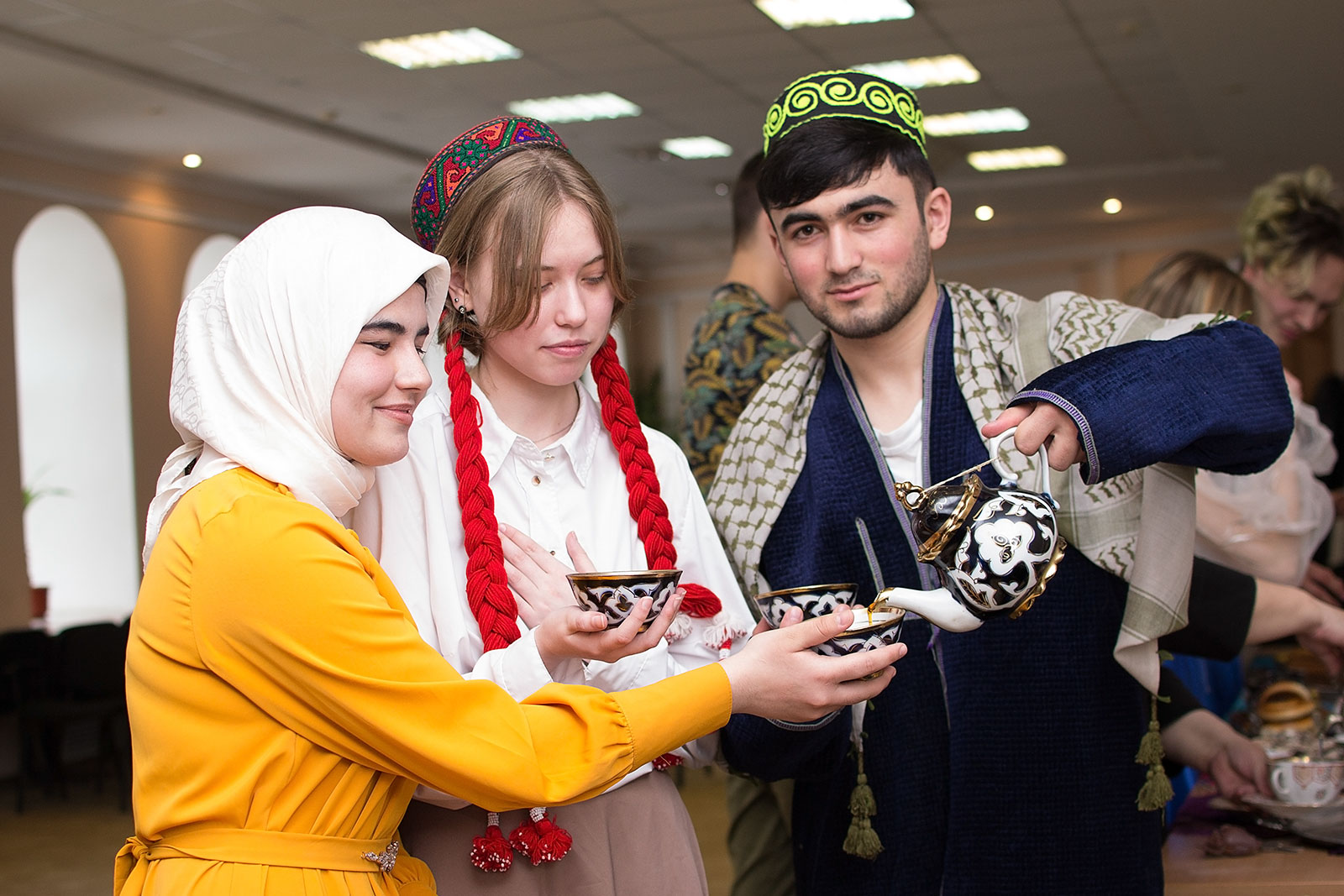 米丘林国立农业大学社科和教育学院师生介绍了俄罗斯的茶文化,表演了俄罗斯民族歌曲、舞蹈,并通过“茶炊”等茶具展示了俄罗斯茶文化。同时,来自塔吉克斯坦、伊拉克的国际学生通过诗歌朗诵和民族乐器演奏展示了本国的茶文化。