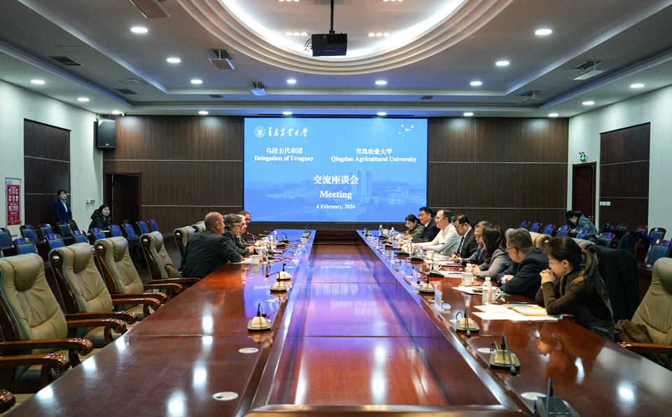 王永健对乌拉圭高访团组的到访表示热烈欢迎,回顾了学校与乌拉圭国家农业研究院等乌拉圭高校院所的合作历史和成果,向代表团介绍了山东省、青岛市的经济社会发展概况,以及学校的办学特色、科研优势和草地农牧业相关学科的科研成果。他强调,此次座谈会恰逢其时,是积极响应《中华人民共和国和乌拉圭东岸共和国关于深化中乌全面战略伙伴关系的联合声明》的重要学术活动,学校将依托自身在草业科学的科研优势,与乌方合作伙伴携手夯实科研合作基础,加快推进联合实验室实质性建设,推动双方合作向产学研用一体化深度融合。
