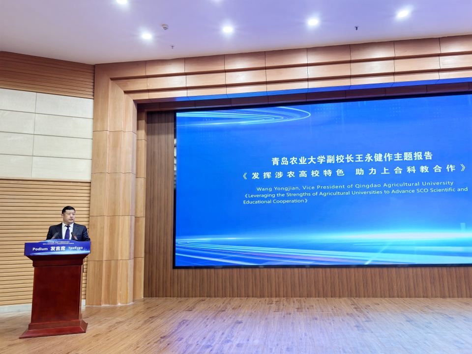 在校长论坛上,王永健副校长代表学校以《深度融入上合大家庭,创新国际化产教融合》为题作报告,从“面向国家战略需求,推动学校高质量发展”“面向上合组织国家人才需求,开展国际化人才培养”“面向上合组织国家农业需求,开展国际化产教融合”三个方面介绍了学校与上合组织国家高校和科研院所共同推进产学研一体化的实践。