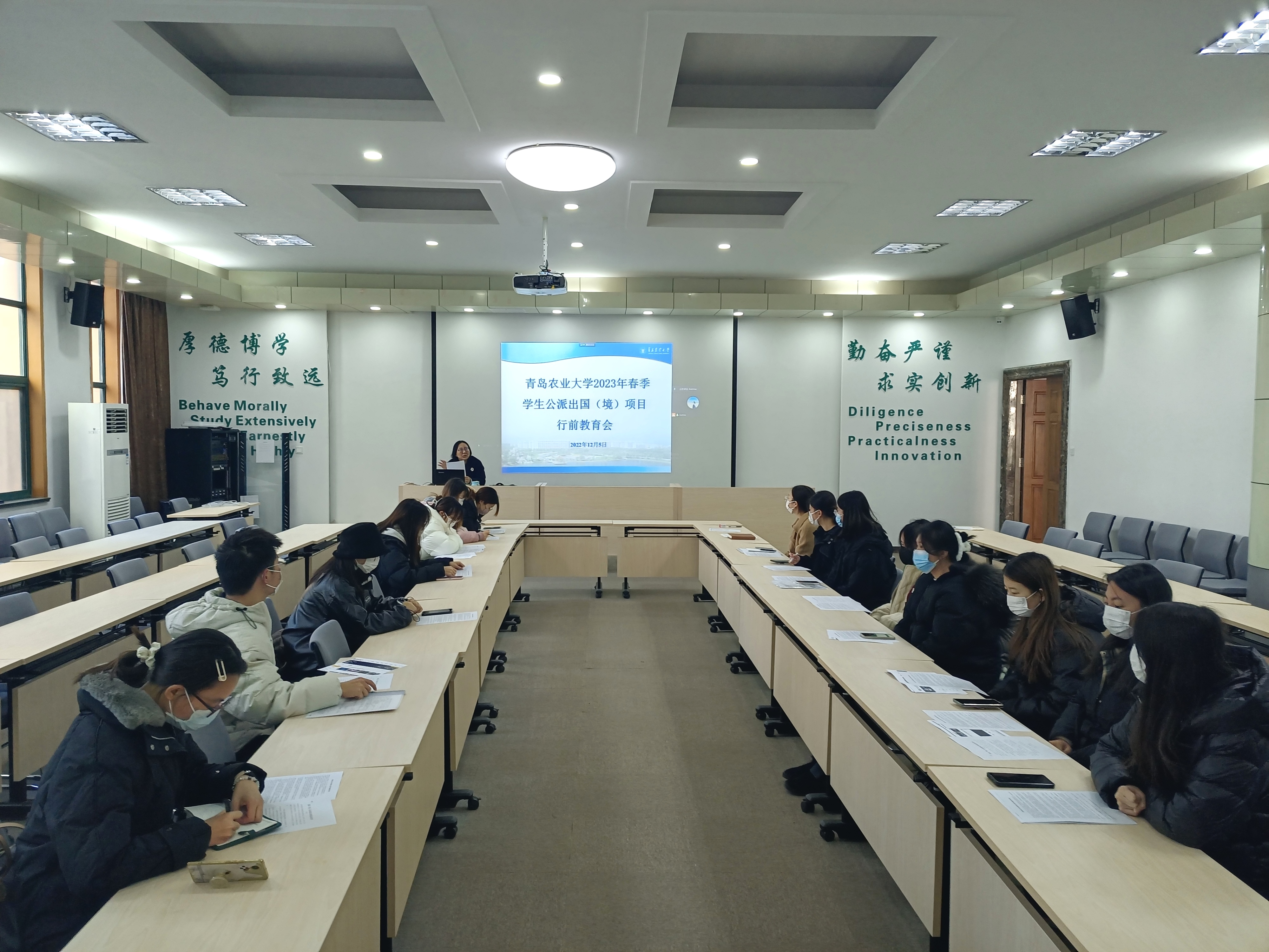 会上,吴骁带领大家共同学习了学生公派出国(境)行前教育明白纸,并从注意人身、财产、信息安全,疫情防控,维护国家、学校、个人形象及保持联络畅通等方面强调了有关注意事项;同时,详细讲解了在学生赴外方友好院校学习期间课程选择、学分转换、住宿及返校报到等相关手续应如何办理。最后,吴骁叮嘱学生要珍惜此次赴外方友好院校交流学习的机会,努力学习专业知识,不断提升专业技能,并积极传播中国优秀传统文化,讲好中国故事,讲好“青农”故事,展示“青农”学子的良好精神风貌。