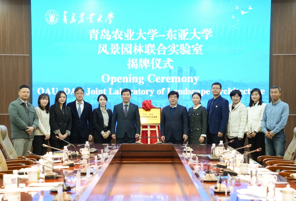 座谈会上,田义轲从办学历史、人才培养、科学研究、国际合作交流等方面向大家介绍了学校基本情况,重点介绍了学校在作物、园艺、畜牧、农业工程、草业、水产及食品科学等领域的研究优势与主要特色。田义轲表示,青岛农大与韩国高校合作密切,已与包括韩国东亚大学在内的十余所高校开展学生交换、“2+2”双学位、合作办学、教师互访以及科研学术交流等不同形式的合作,并取得了显著的成果;最后,希望两校以此次联合实验室揭牌为契机,未来双方携手在师生交流、人才培养和联合科研等领域不断深化合作。