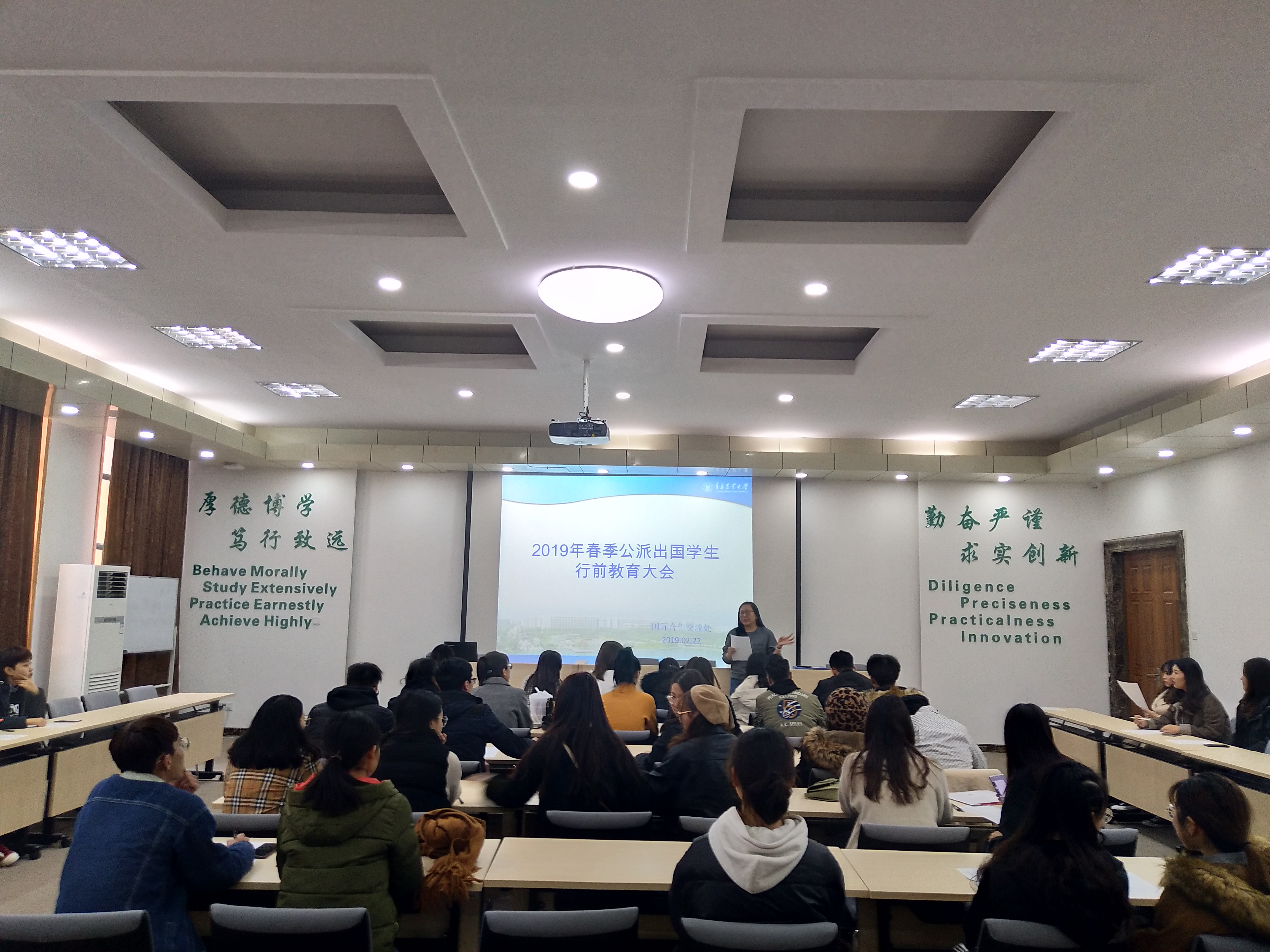 2月22日下午,2019年春季公派出国学生行前教育大会在专家楼115举行,会议由太阳成集团tyc9728学生出国(境)事务总负责人吴骁老师主持,我校2019年春季公派出国全体学生参加了会议。