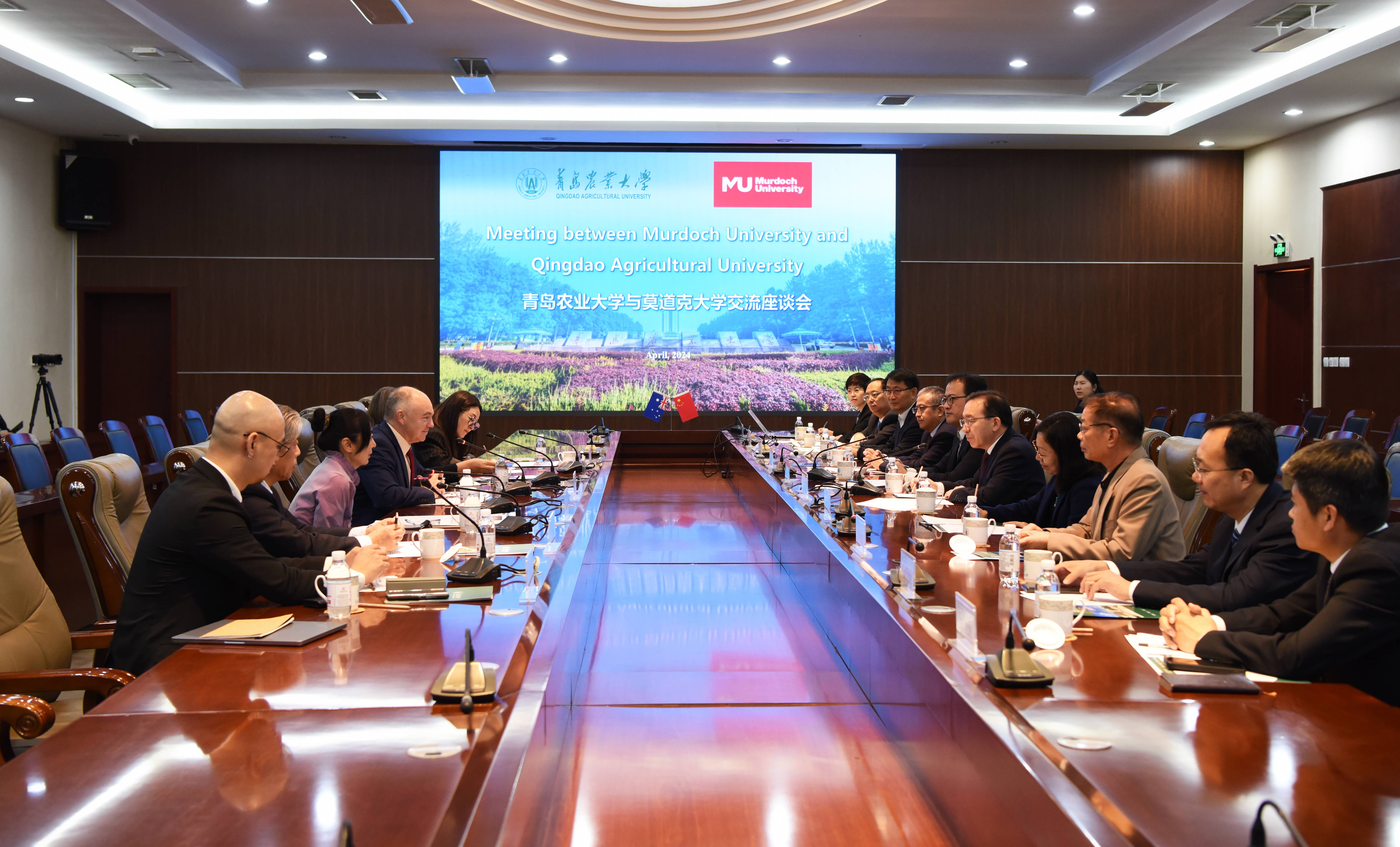 4月10日上午,澳大利亚莫道克大学校长安德鲁·迪克斯、莫道克大学哈瑞·巴特勒研究院主任特蕾娜·博格斯等一行来学校访问,洽谈两校合作事宜。校长赵金山、副校长张玉梅、副校长孙庆杰在学术会馆会见了客人,并出席两校的合作交流座谈会。