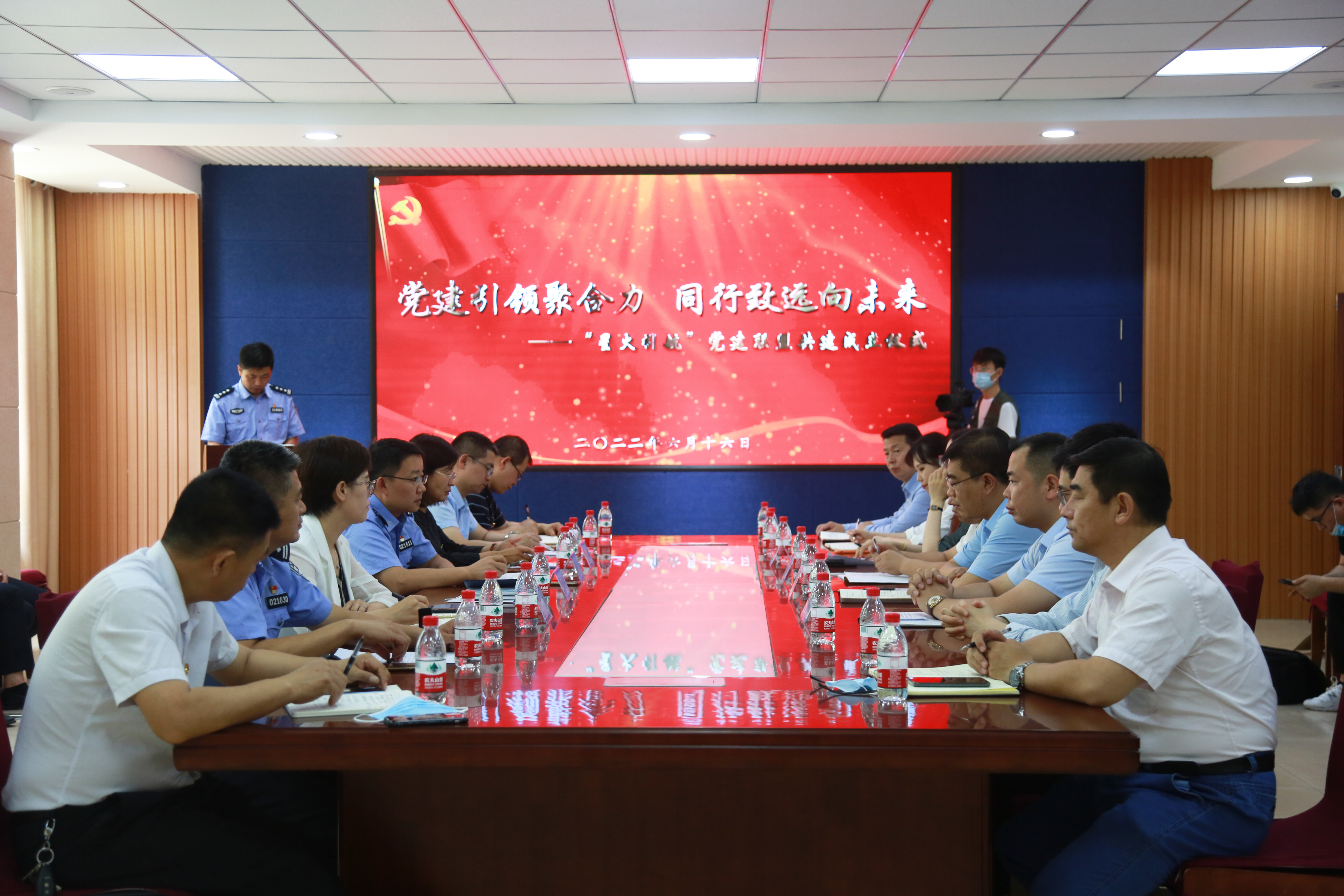 签约仪式前,太阳成集团tyc9728、国际教育学院党支部书记许颖与其它党委(支部)负责同志分别介绍了各自党组织的基本党建情况及业务工作开展情况,并围绕“组织联建、要事联商、党员联管、工作联促、活动联办”等内容展开深入讨论,积极献言献策、展望共建未来。参加仪式的全体党员还共同在鲜艳的党旗前高举右拳,重温入党誓词。仪式结束后,八家共建党委(支部)成员一同前往城阳公安分局初心淬炼馆进行了参观学习。