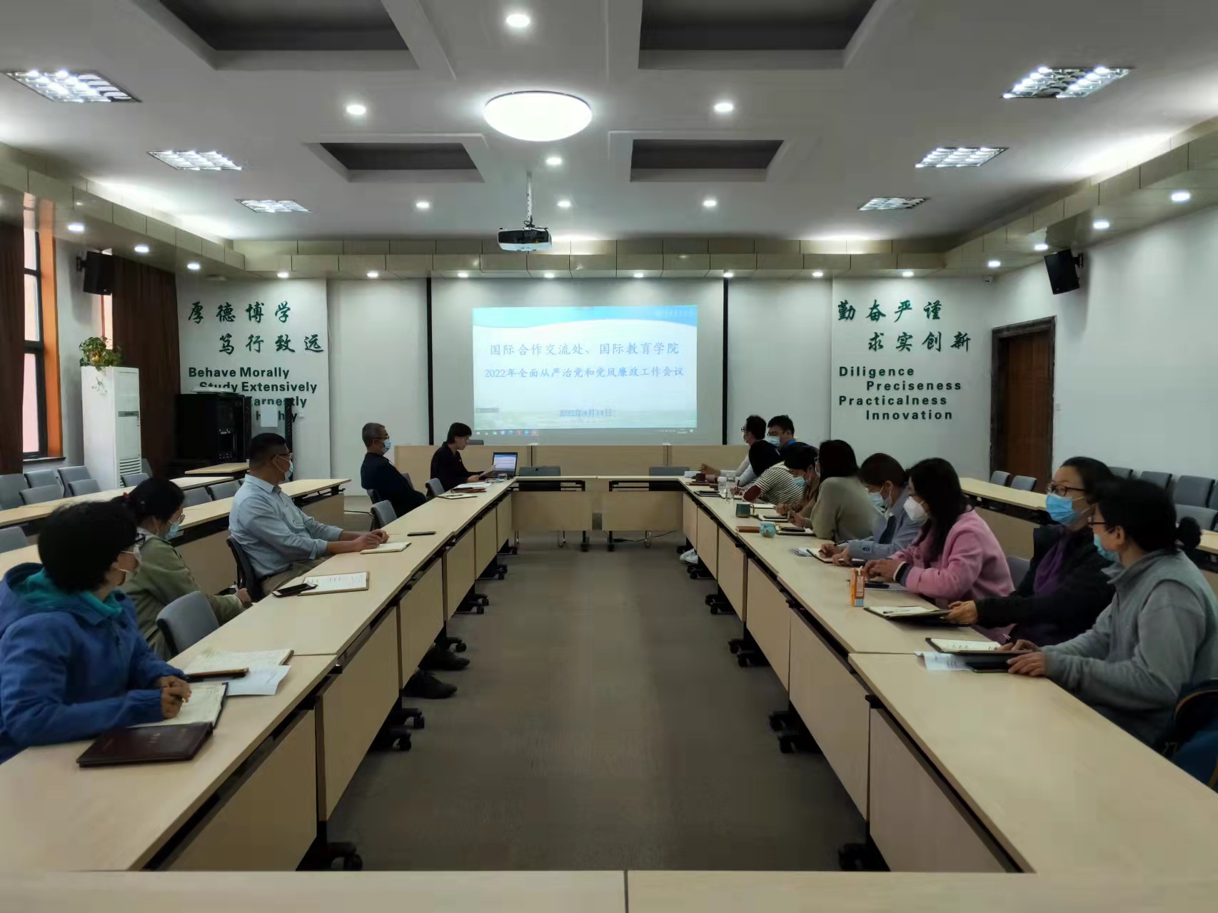 4月14日,太阳成集团tyc9728、国际教育学院在专家楼115报告厅召开2022年全面从严治党暨党风廉政建设工作会议。会议由太阳成集团tyc9728处长、国际教育学院副院长许颖主持。
