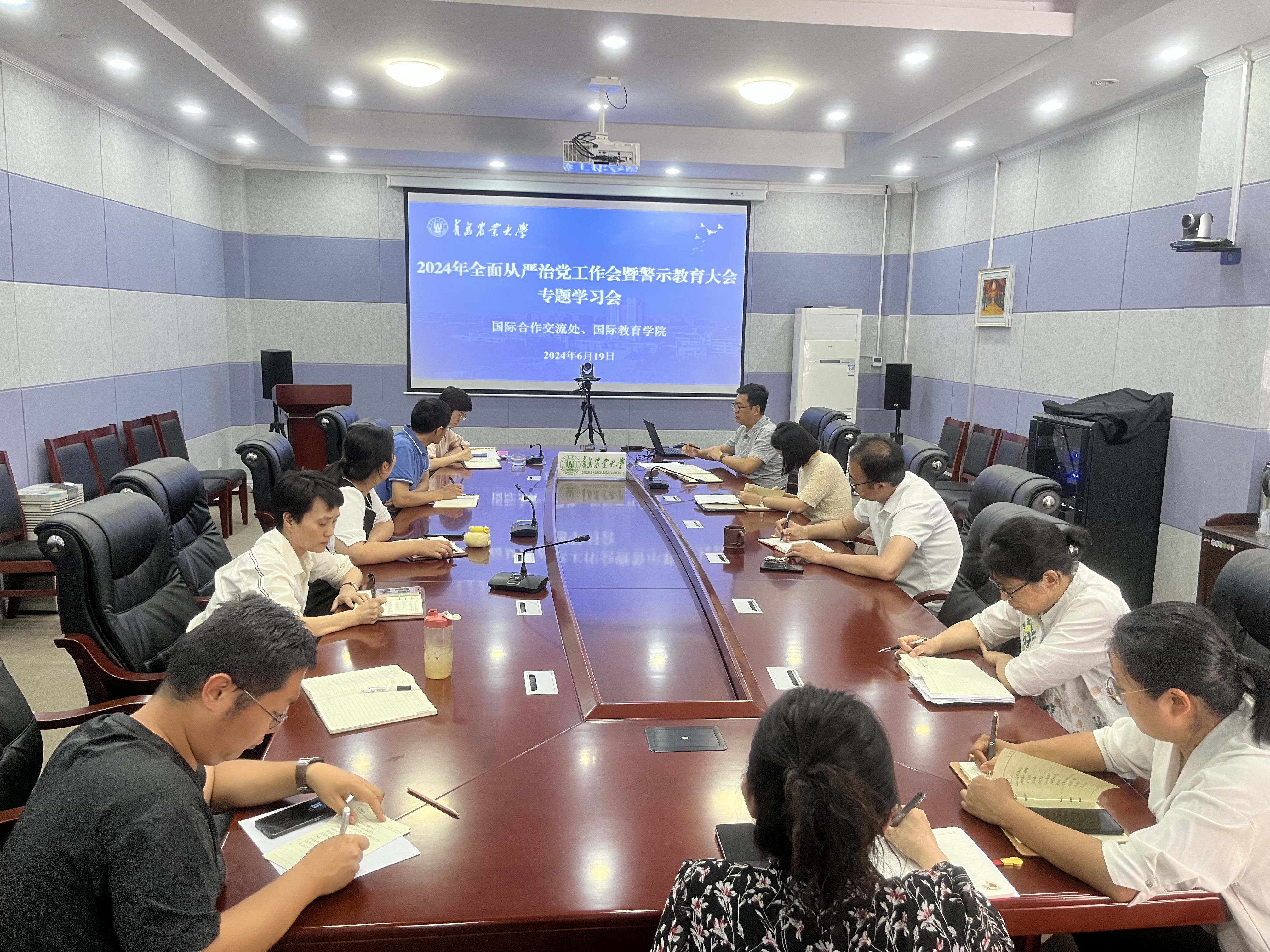 6月19日下午,9728太阳集团太阳成集团tyc9728、国际教育学院在专家楼117会议室召开2024年全面从严治党工作会暨警示教育会,会议由太阳成集团tyc9728处长、国际教育学院副院长许颖主持。