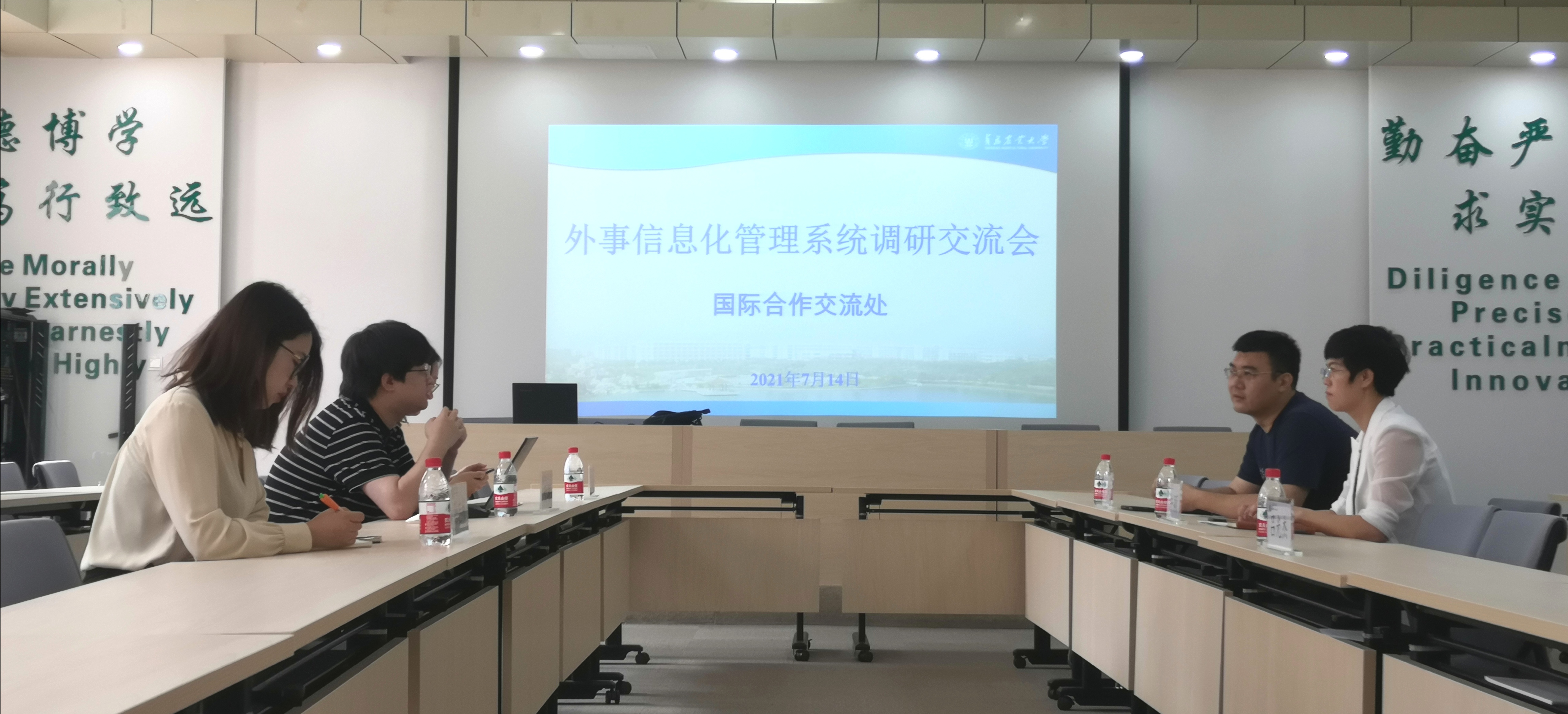 会谈中,双方就外事管理系统信息化建设发展方向和如何将学校与省市两级外办系统进行信息交互对接等方面进行了交流与探讨。