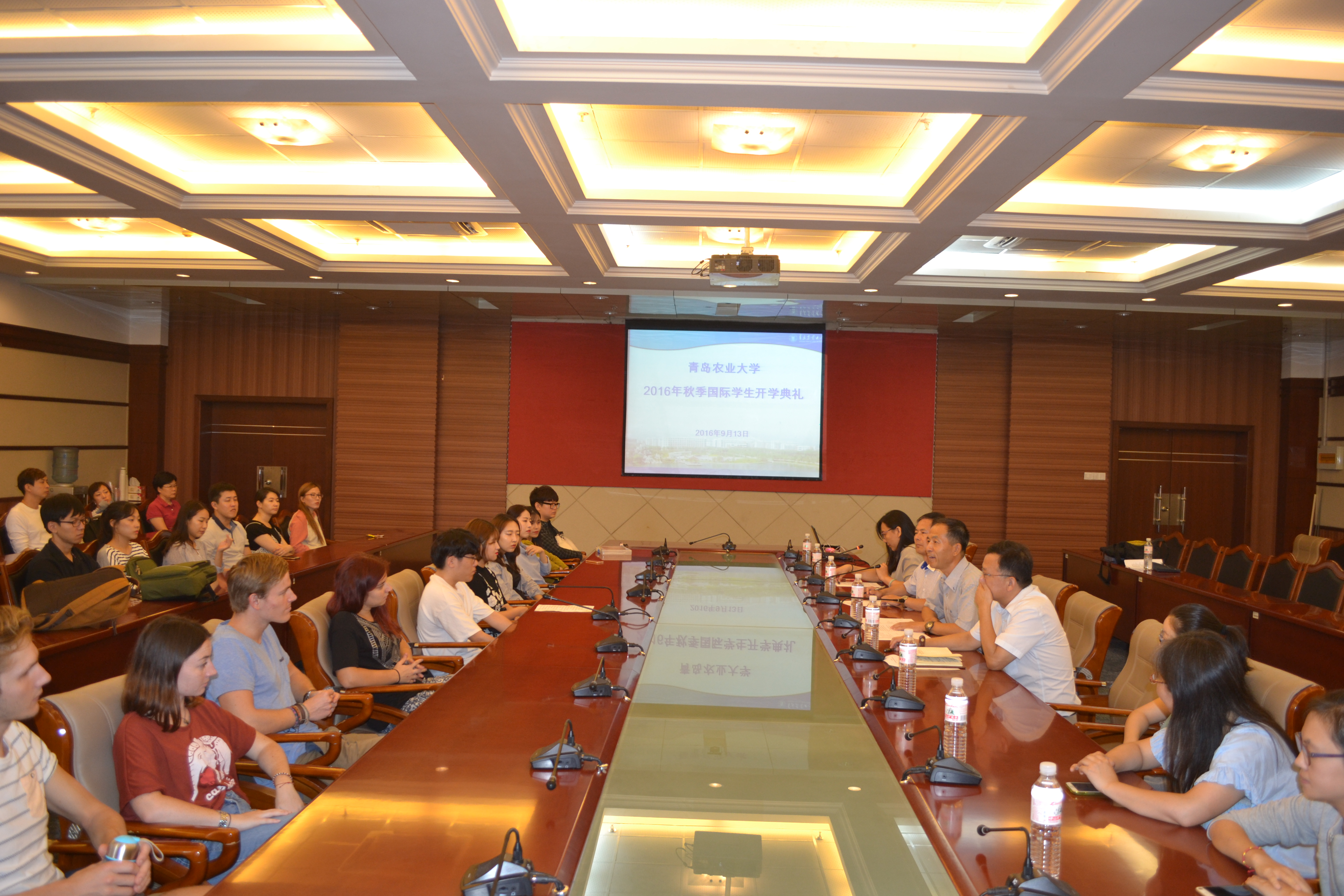 9月13日上午,9728太阳集团2016年秋季国际学生开学典礼暨入学教育在图书馆三楼会议室举行。副校长原永兵出席典礼。来自荷兰、南非、日本、韩国、蒙古、菲律宾、斯洛伐克、立陶宛8个国家的63位国际生代表参加典礼。