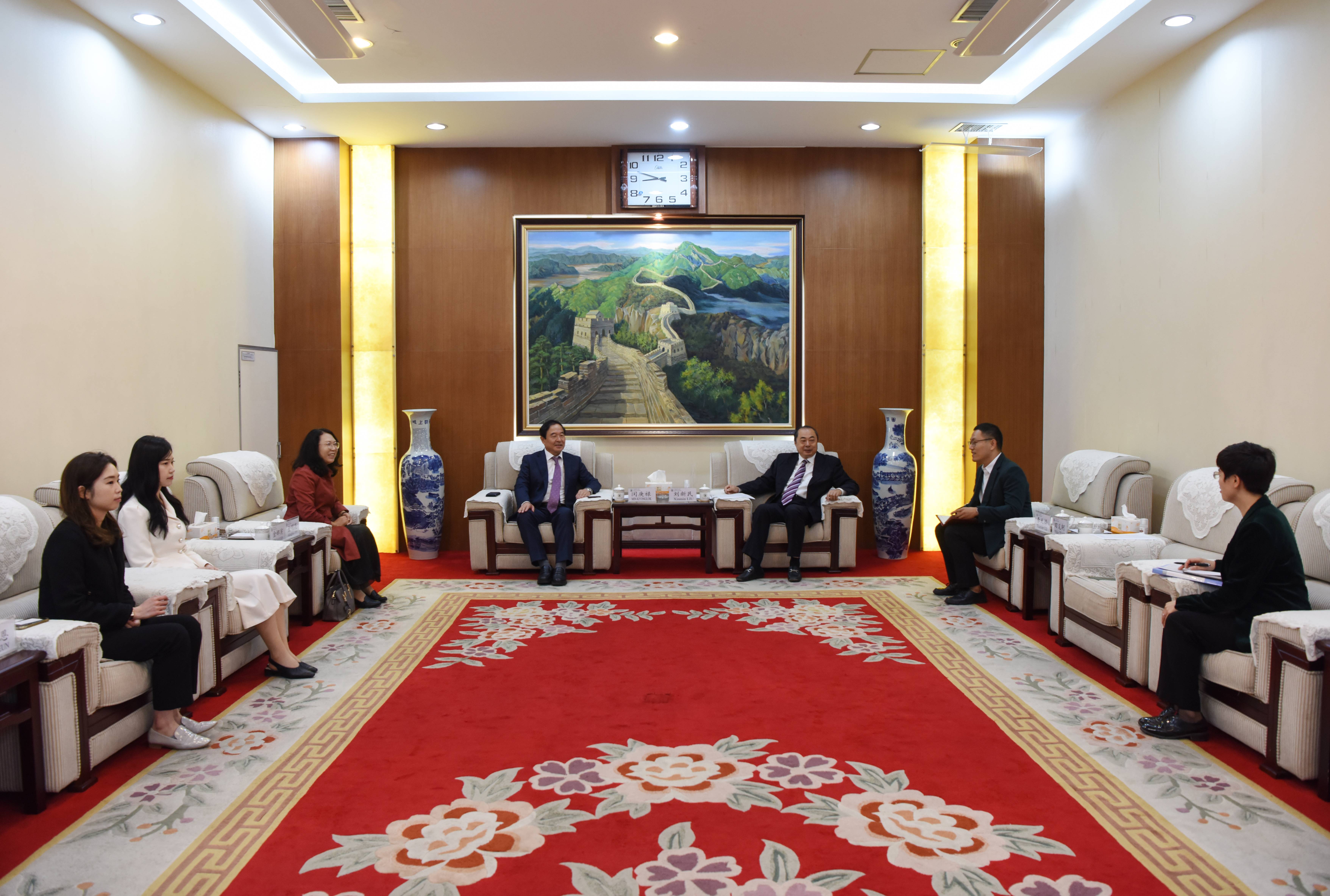 10月19日,韩国东亚工业高等学校(DONG-A TECHNICAL HIGH SCHOOL)校长闵庚禄一行来访9728太阳集团,校长刘新民、副校长田义轲在学术会馆会见了访问团一行。