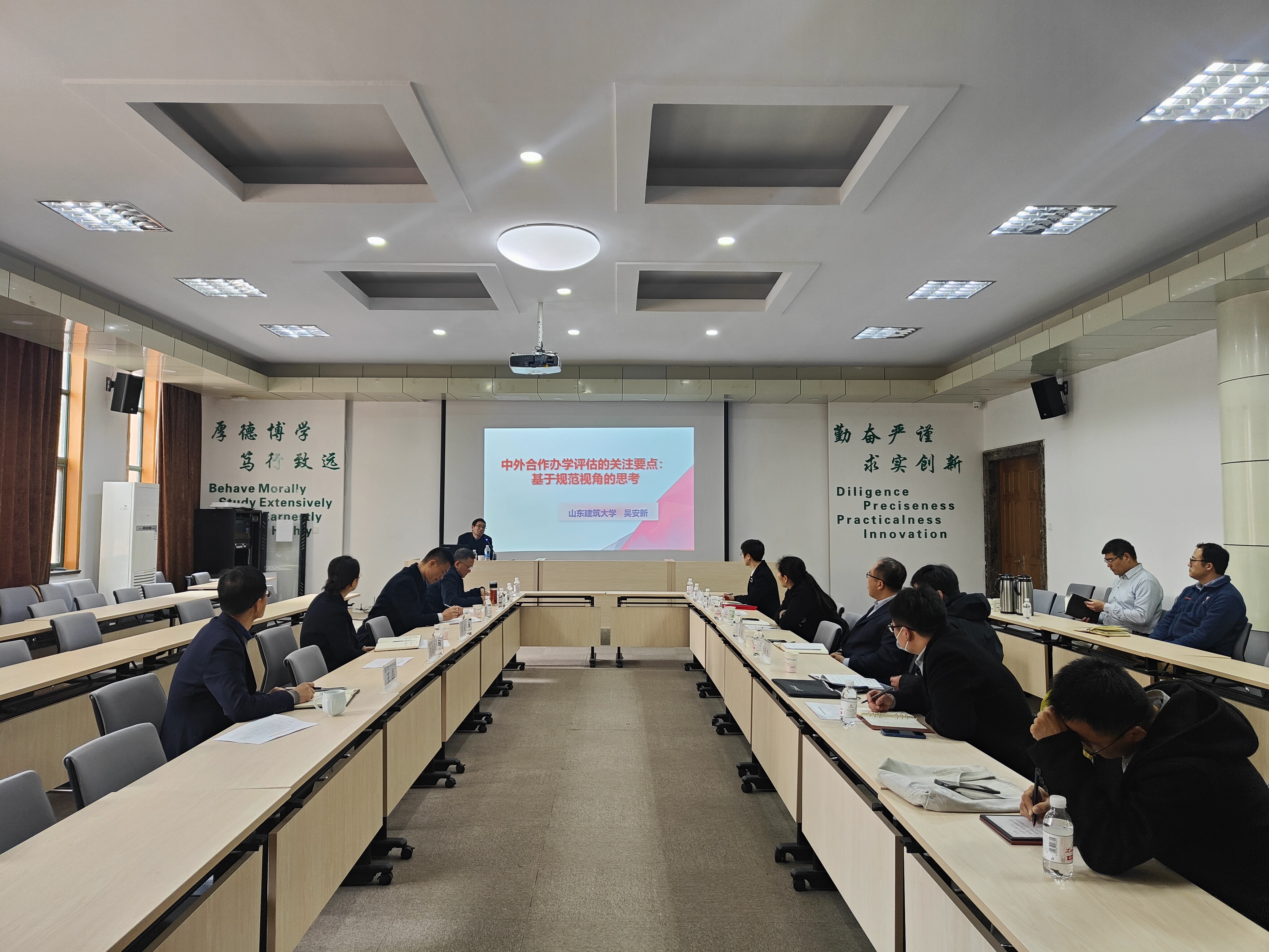 吴安新从评估对象、评估内容、评估程序等方面介绍了在新的评估指标体系下中外合作办学评估的关注要点,就评估中需要关注的法律问题展开了详细的论述。交流环节,吴安新耐心回答了我校参会人员提出的相关问题,并就如何规范、高质量开展中外合作办学提出诸多建议。