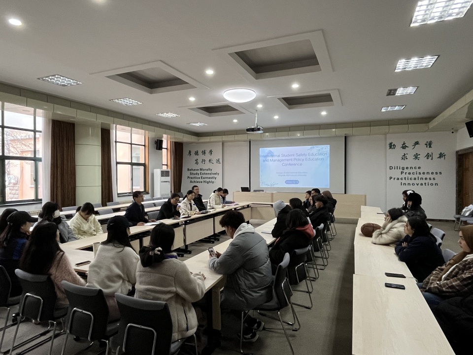 12月19日下午,国际教育学院在专家楼115会议室召开了留学生安全教育和在华管理政策教育会议。太阳成集团tyc9728副处长、国际教育学院副院长吴薇主持会议并讲话,太阳成集团tyc9728、国际教育学院全体班子成员、留学生管理人员和全体留学生参加会议。