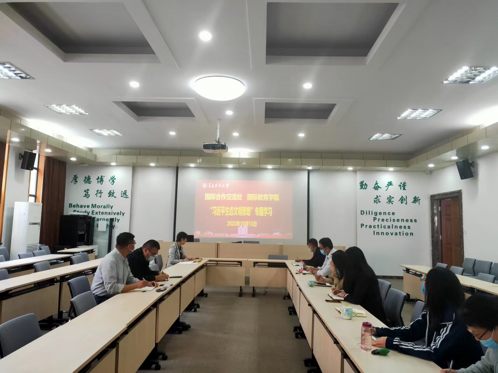 10月13日下午,太阳成集团tyc9728、国际教育学院开展“习近平生态文明思想”专题学习,全体教职工参加学习。会议由太阳成集团tyc9728处长、国际教育学院副院长许颖主持。