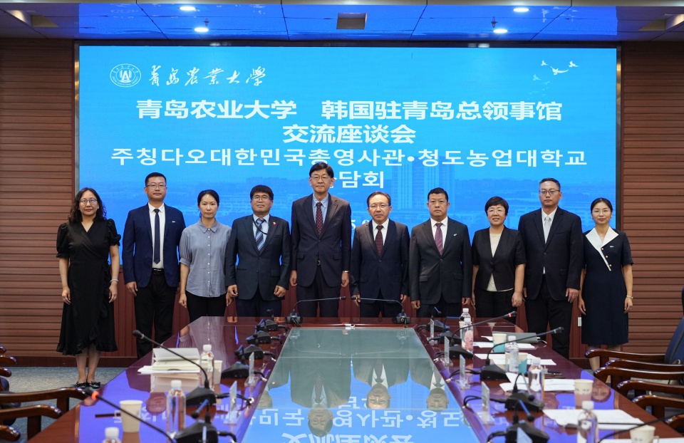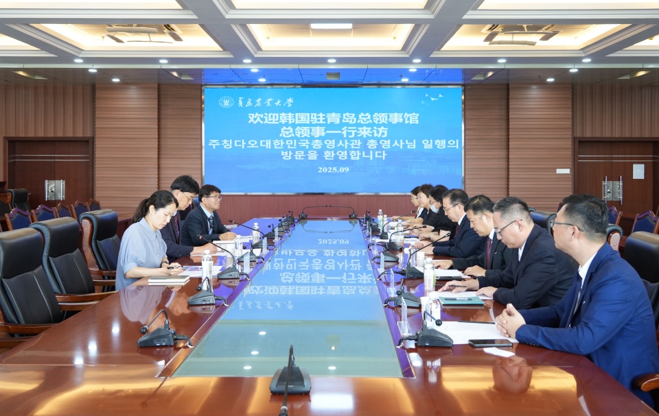 9月9日,韩国驻青岛总领事馆总领事柳昌秀一行访问我校,校党委副书记、校长赵金山会见了来访客人,校党委委员、副校长王永健主持座谈会。