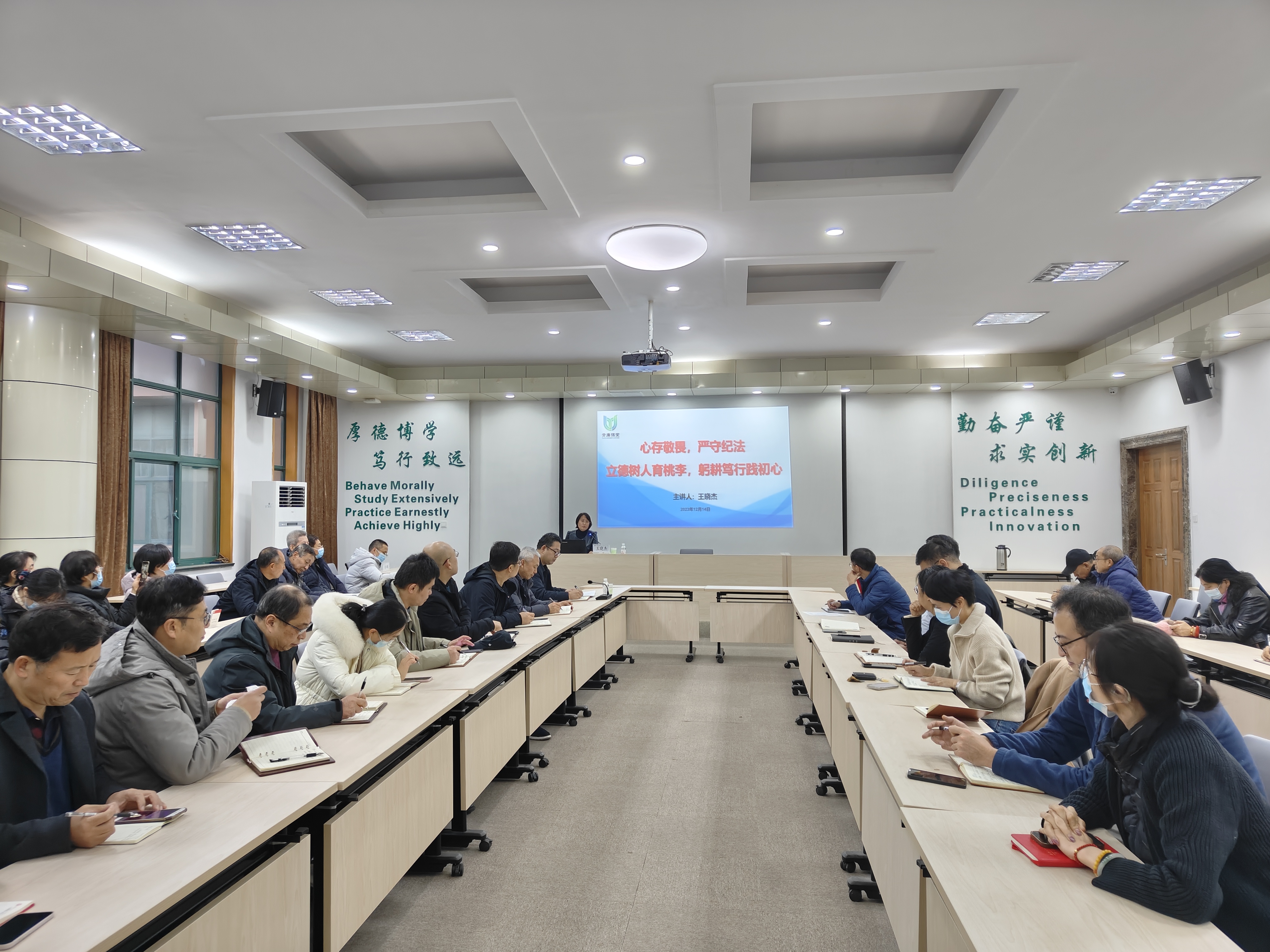 王晓杰以《心存敬畏,严守纪法 立德树人育桃李,躬耕笃行践初心》为主题,从酒驾醉驾的概念标准、认识误区、处罚、量刑标准和处分,详细解读了酒驾醉驾危害后果及受到处理处分相关党纪法规依据,并通过教育系统违法违纪的十个典型案例详细阐释了酒驾醉驾背后“四风”问题涉及违反中央八项规定精神的认识。她强调,全体教职工要严格遵守中央八项规定,杜绝任何违规违纪违法行为。
