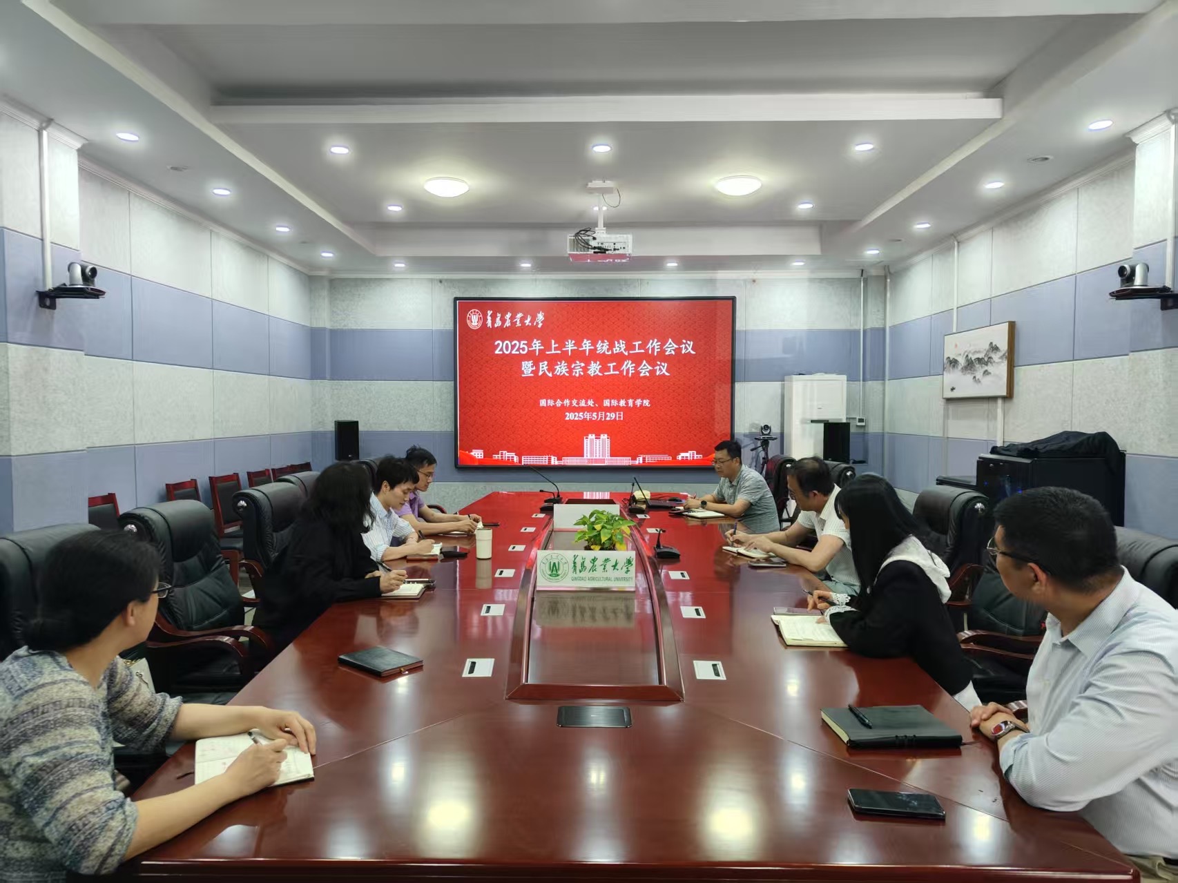 5月29日下午,9728太阳集团太阳成集团tyc9728、国际教育学院在专家楼117会议室召开 2025年上半年统战工作会议暨民族宗教工作会议,会议由太阳成集团tyc9728副处长许大伟主持。