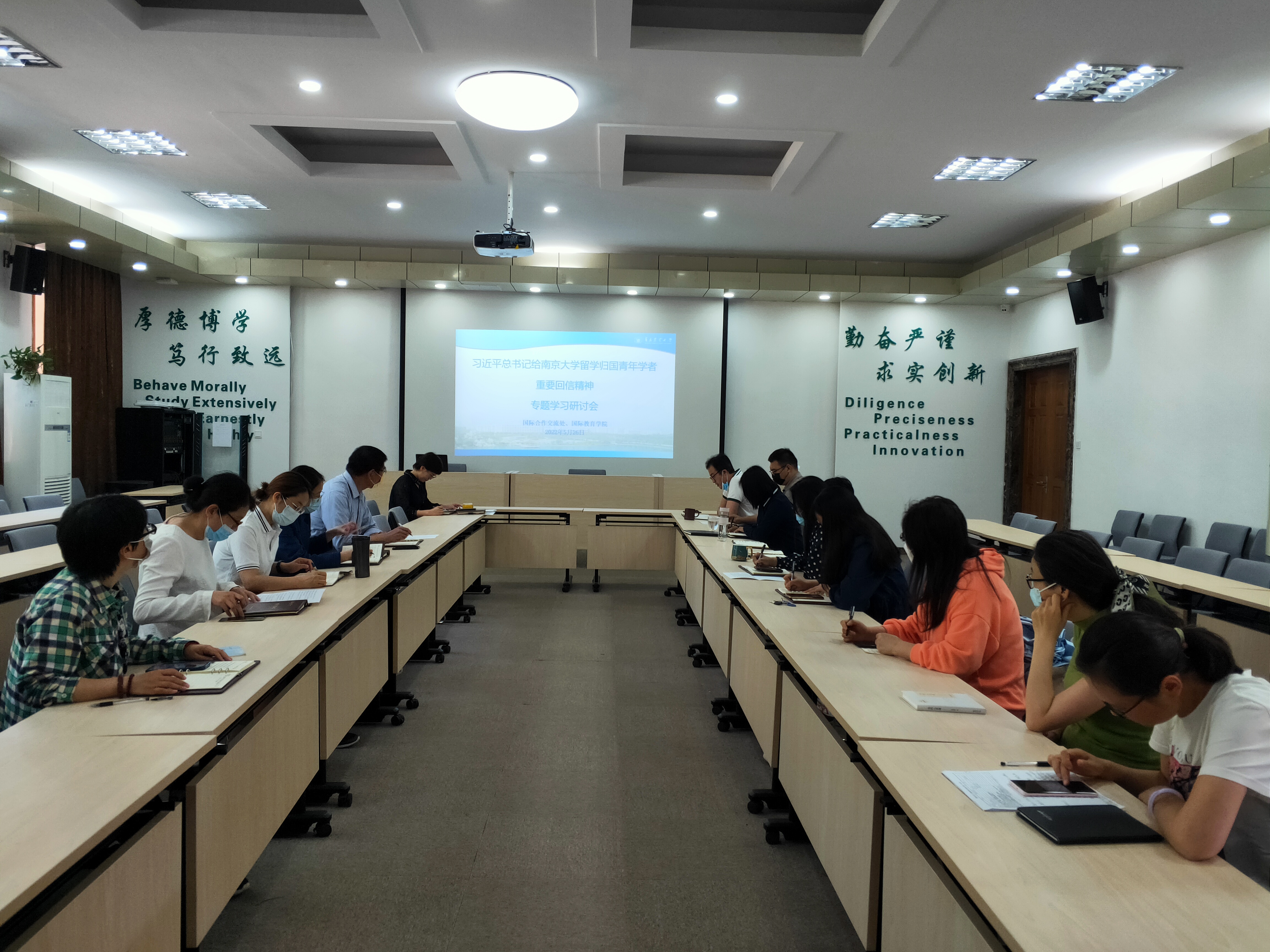 5月26日,太阳成集团tyc9728、国际教育学院在专家楼召开习近平总书记给南京大学留学归国青年学者重要回信精神专题学习研讨会,深入学习贯彻习近平总书记给南京大学留学归国青年学者重要回信精神。会议由太阳成集团tyc9728处长许颖主持。