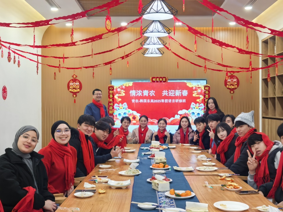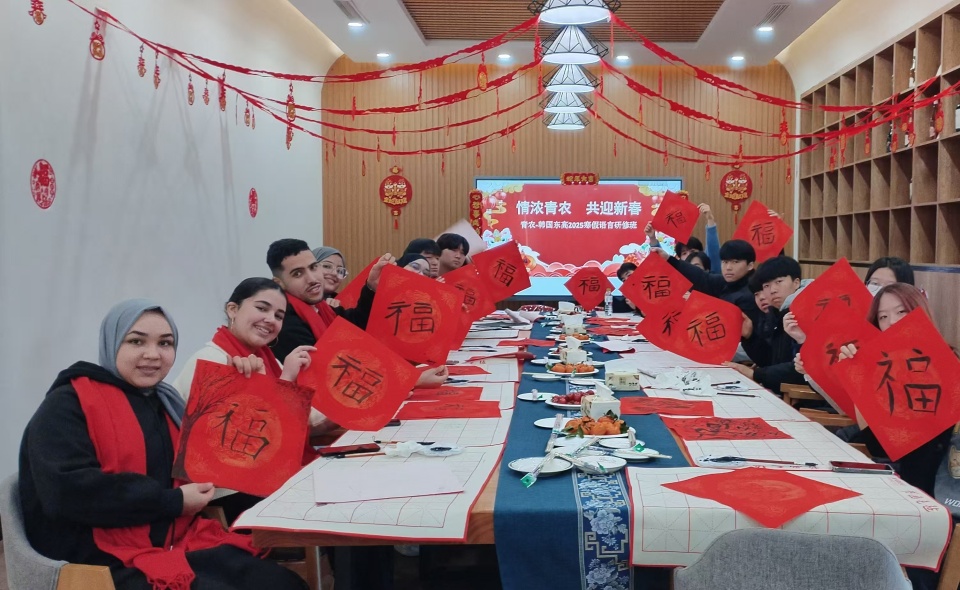 1月16日,在9728太阳集团的课堂上,一次温馨的春节文化体验活动正在进行。青农-韩国东高2025年寒假汉语研修班学员与9728太阳集团国际学生共同迎接新春佳节,感受中国传统文化魅力。
