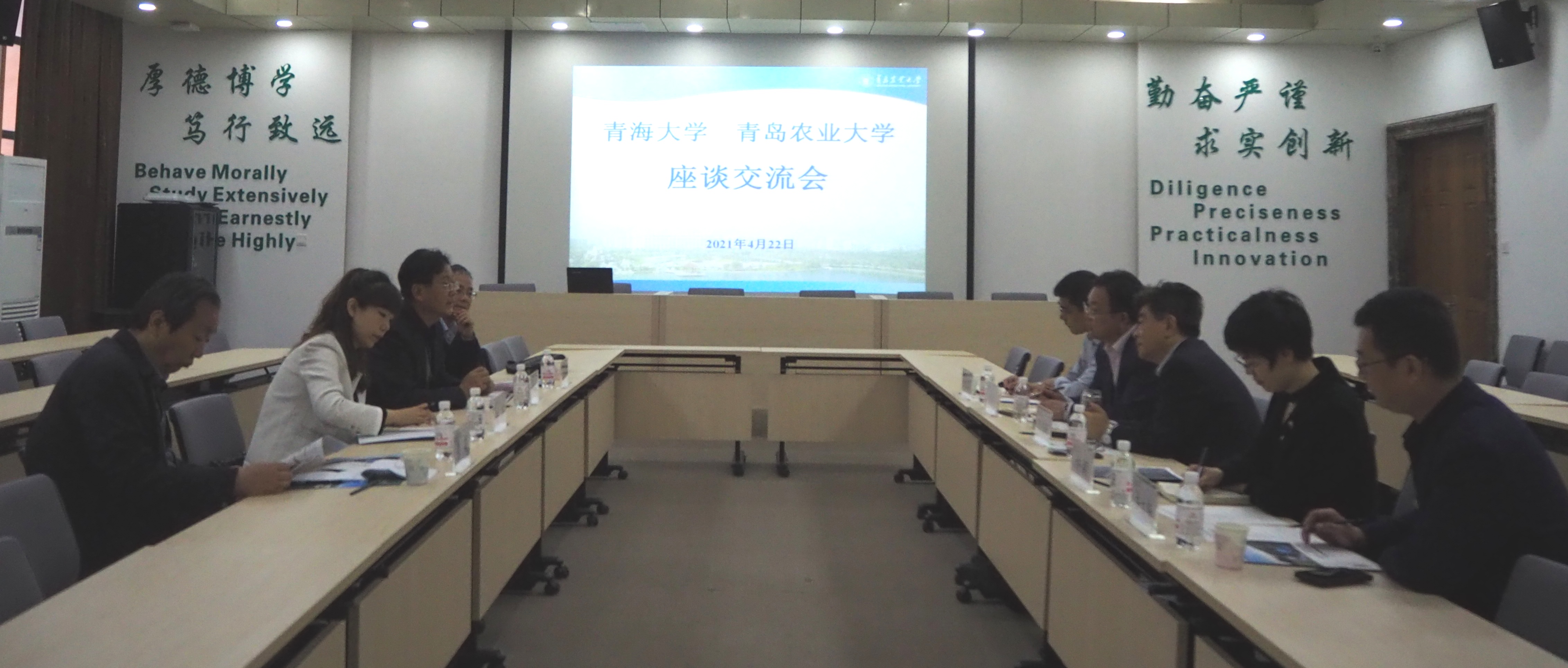 座谈会前,赵金山陪同来访人员参观了青岛特种食品研究院、山东省一流学科(草业)科技创新平台、巴瑟斯未来农业科技学院,介绍了学校在相关领域取得成果。