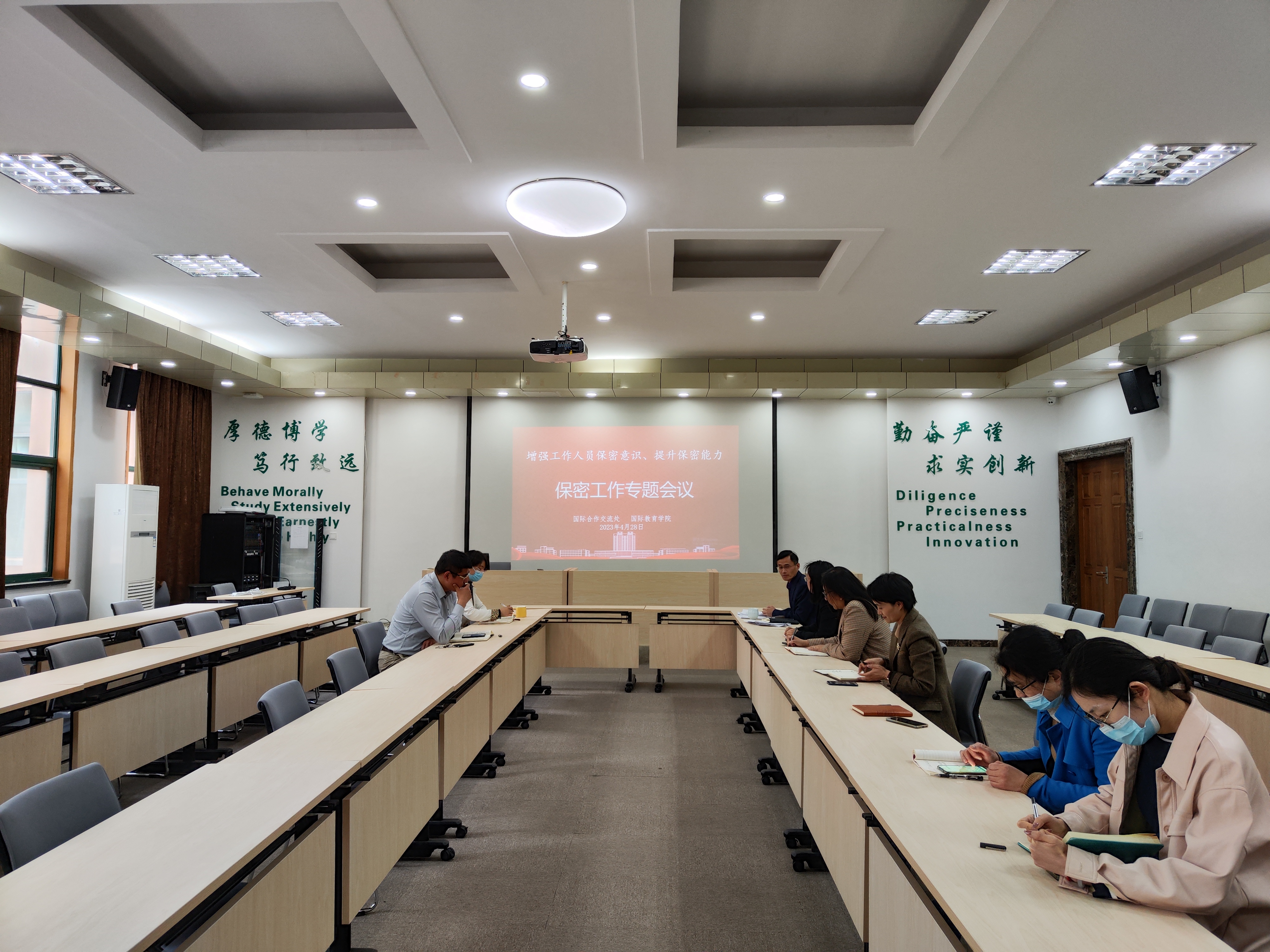 4月28日下午,太阳成集团tyc9728副处长、国际教育学院副院长王磊在专家楼115会议室主持召开保密工作专题会议,全体教职工参加。