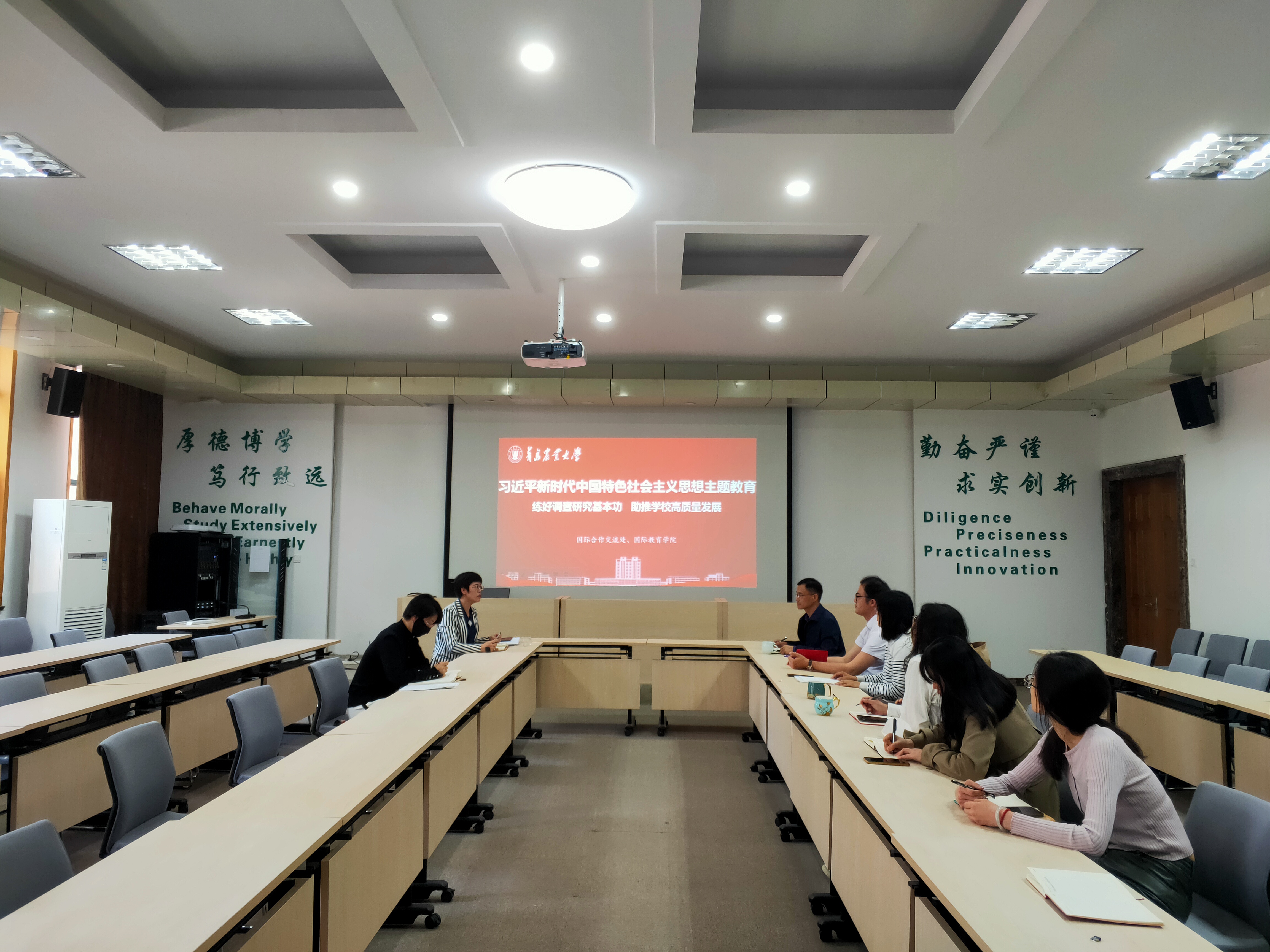 为纵深推进学习贯彻习近平新时代中国特色社会主义思想主题教育,深刻理解把握习近平总书记关于调查研究的重要论述,不断夯实调查研究这一基本功,5月11日,国际交流合作处、国际教育学院开展“练好调查研究基本功 助推学校高质量发展”专题交流会,会议由太阳成集团tyc9728处长、国际教育学院副院长许颖主持,全体教职工参加会议。
