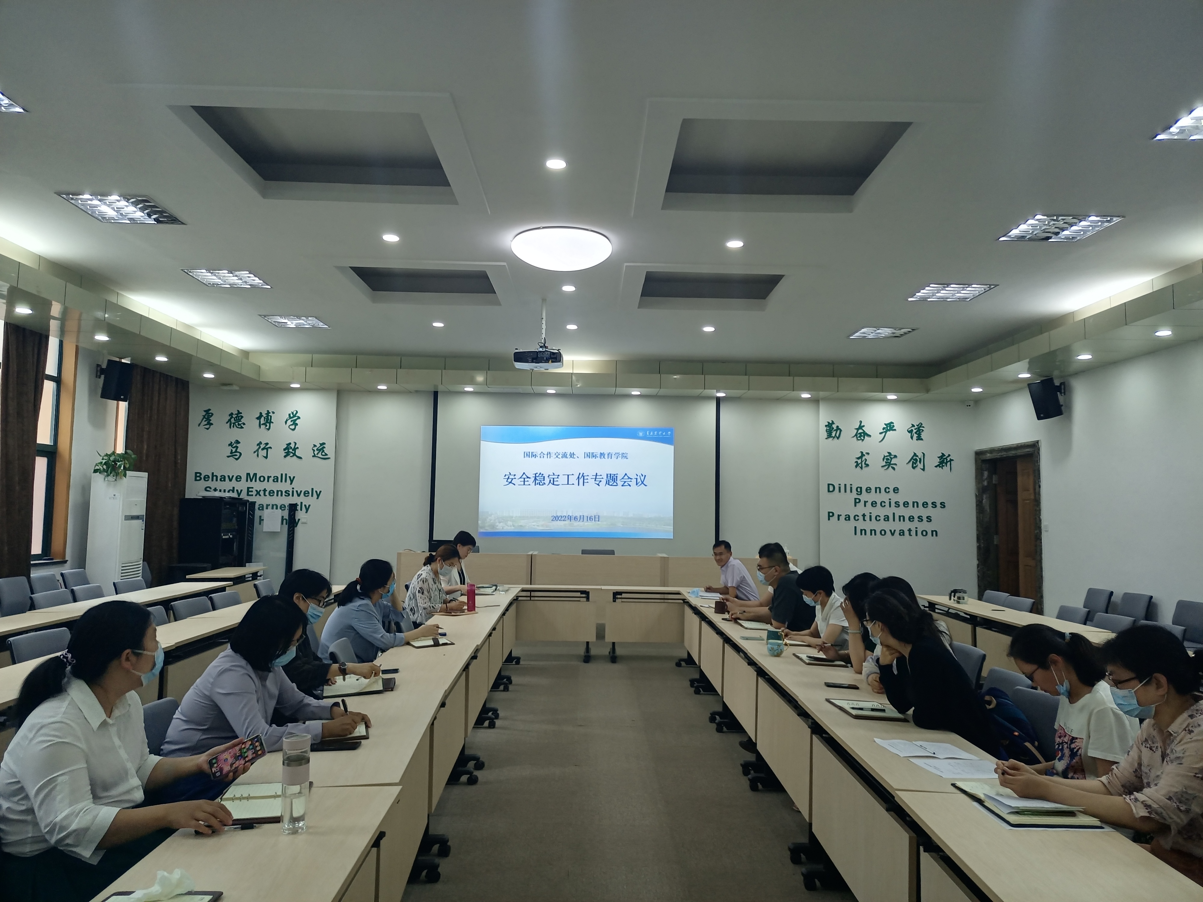 6月16日下午,太阳成集团tyc9728、国际教育学院在专家楼115房间召开安全稳定工作专题会议。会议由太阳成集团tyc9728处长、国际教育学院副院长许颖主持,全体教职员工参加。