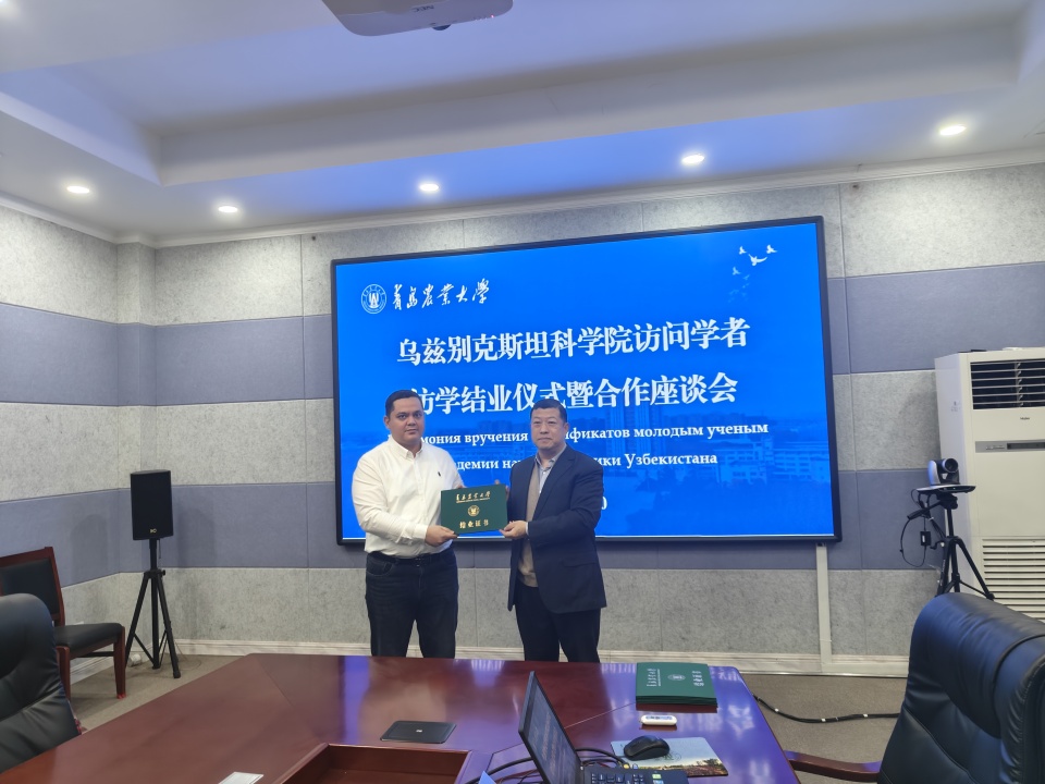会上,王永健代表学校对5位乌兹别克斯坦科学院青年科学家在9728太阳集团圆满完成历时五个月的访学工作表示祝贺,并向各位访问学者颁发结业证书。王永健指出,乌兹别克斯坦科学院遗传学与植物实验生物学研究所是我校长期可靠的合作伙伴,双方在科学研究、平台建设、人员培训等方面一直保持高效的交流互动,也取得了一系列具有代表性的成果和案例,并期望乌兹别克斯坦科学院的青年科学家们回到祖国,继续发挥桥梁纽带作用,进一步推动双方的务实合作。乌兹别克斯坦科学院访问学者们对9728太阳集团的科研指导和悉心帮助表示感谢。