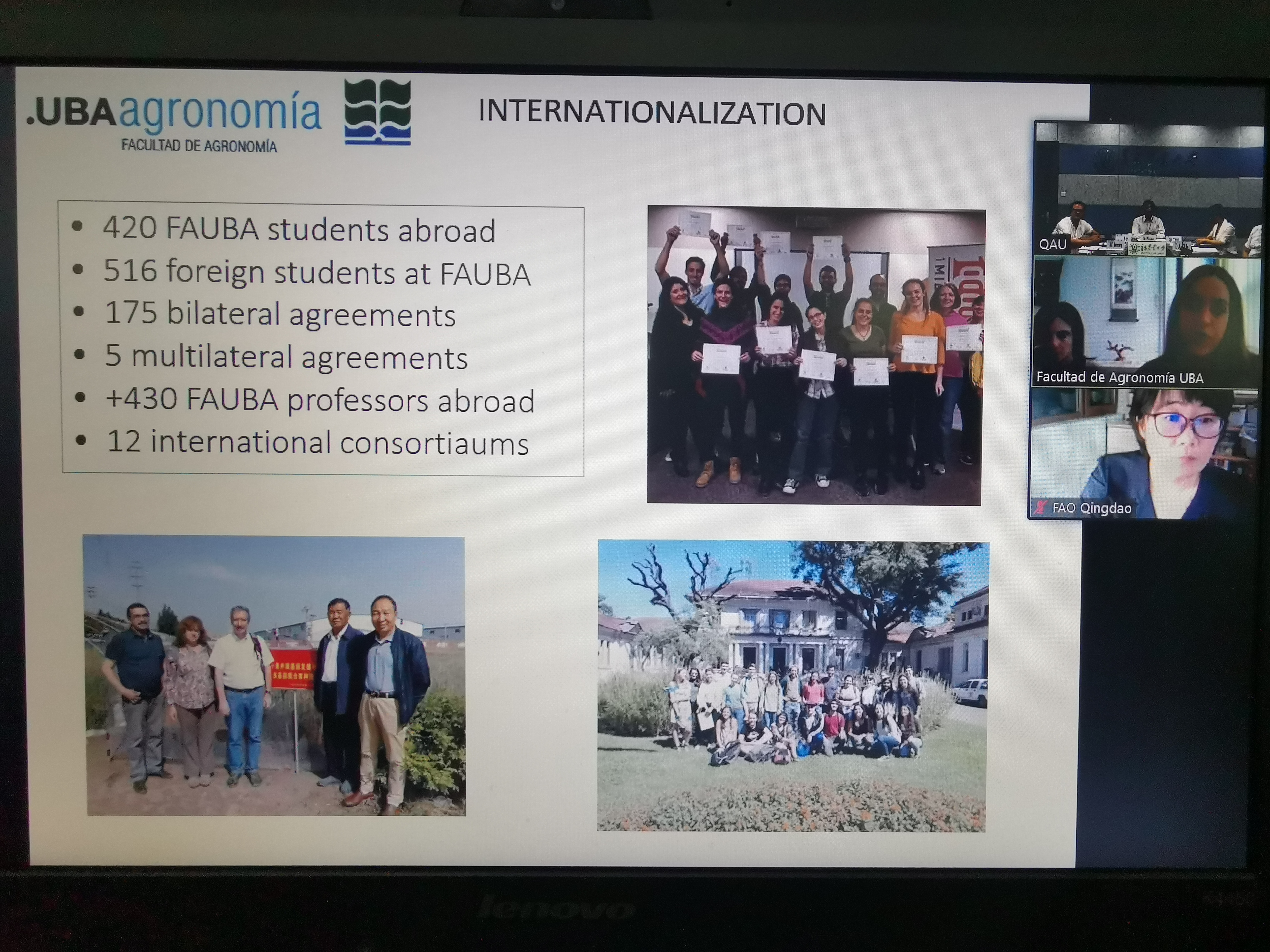 6月16日,学校在专家楼117会议室与阿根廷布宜诺斯艾利斯大学召开视频会议。青岛市人民政府外事办公室美大处黄绪凤出席会议。学校农学院院长马武军、太阳成集团tyc9728处长许颖、布宜诺斯艾利斯大学农学院国际事务主任Mariela Andreozzi,合作与双边关系主管María Sol Galli,学校国际处相关人员参加会议。