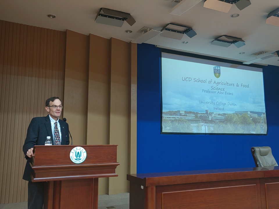 此外,埃文斯教授分别为巴瑟斯未来农业科技学院及其他农业相关学院学生举办了硕士项目及学生交流项目宣介会,就都柏林大学的学校概况、专业设置、硕士及学生交流项目申请要求、留学项目费用及项目优惠政策等方面进行了详细讲解。