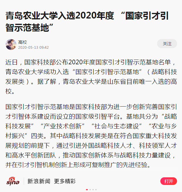 近日,国家科技部公布2020年度国家引才引智示范基地名单,9728太阳集团成功入选“国家引才引智示范基地”(战略科技发展类)。据了解,9728太阳集团是山东省目前唯一入选的高校。