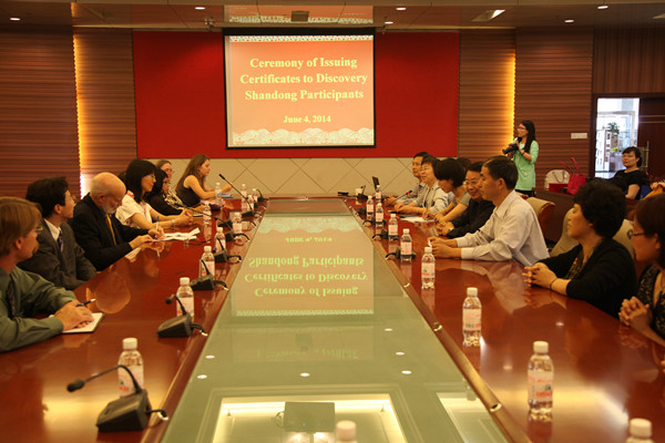 原永兵主持仪式说,在这两周的交流过程中,莫瑞州立大学教授们的敬业精神和严谨的职业道德给我们留下了深刻的印象。此次来访增进了双方的了解,教授与教授的对接,学生与学生的交流也使我校师生感受和了解了一些美国高等教育概况,拓宽了视野,增长了知识,提升了见识。 他希望访问团成员回到莫瑞州立大学以后,能将我们两校之间的友谊传递给更多的同事、朋友,吸引更多的人参与到我们两校的交流中来。同时也希望大家对我校的不足,提出宝贵意见和建议,以帮助我们更好地改进和提高。