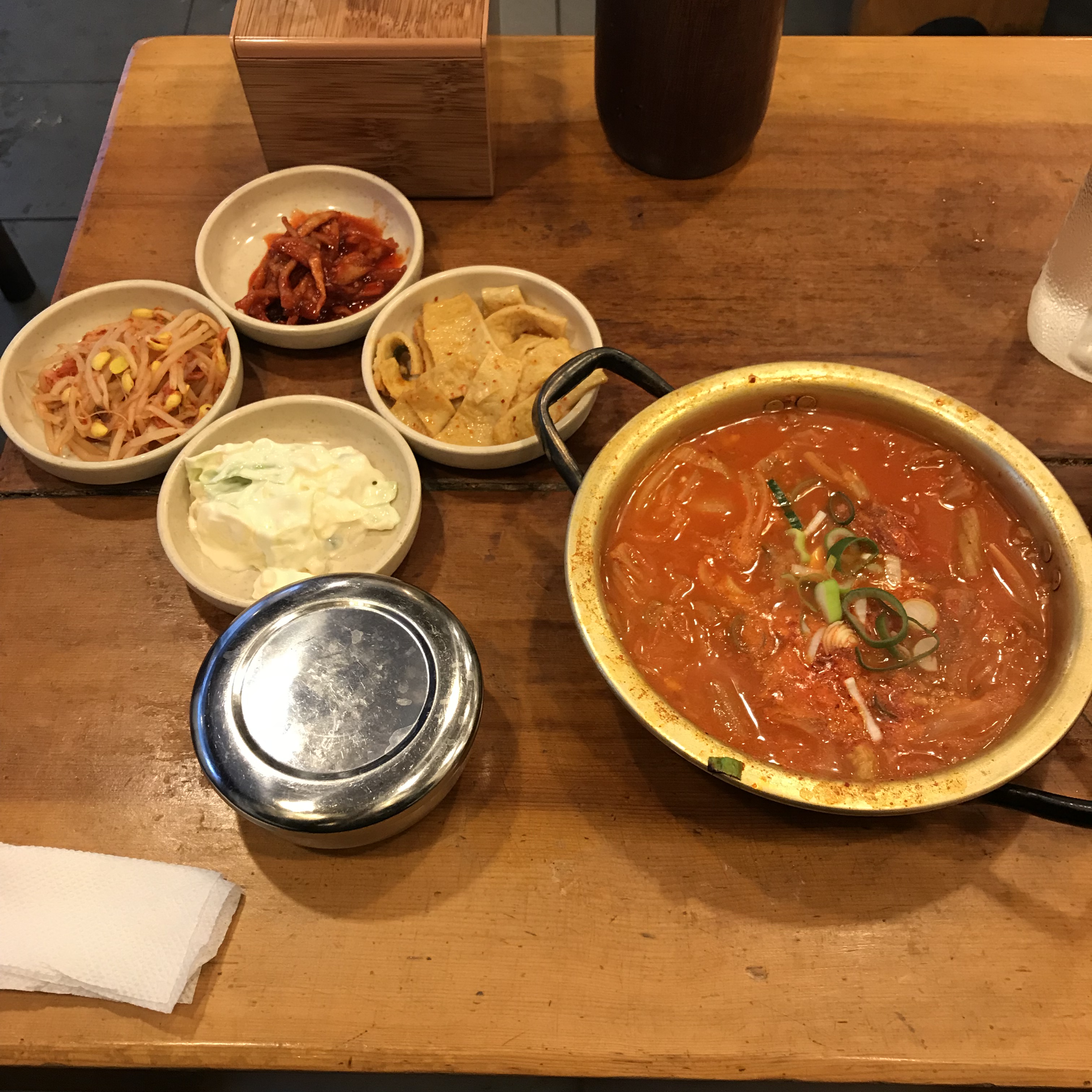 在韩国吃的最多见的最多的也就要数泡菜了,在去韩国之前,我对泡菜的认识仅仅停留在白菜泡菜的认识上,但去了韩国之后,发现泡菜真的是非常多样的,出去吃韩餐有时候光配菜就会摆满一桌子了。
