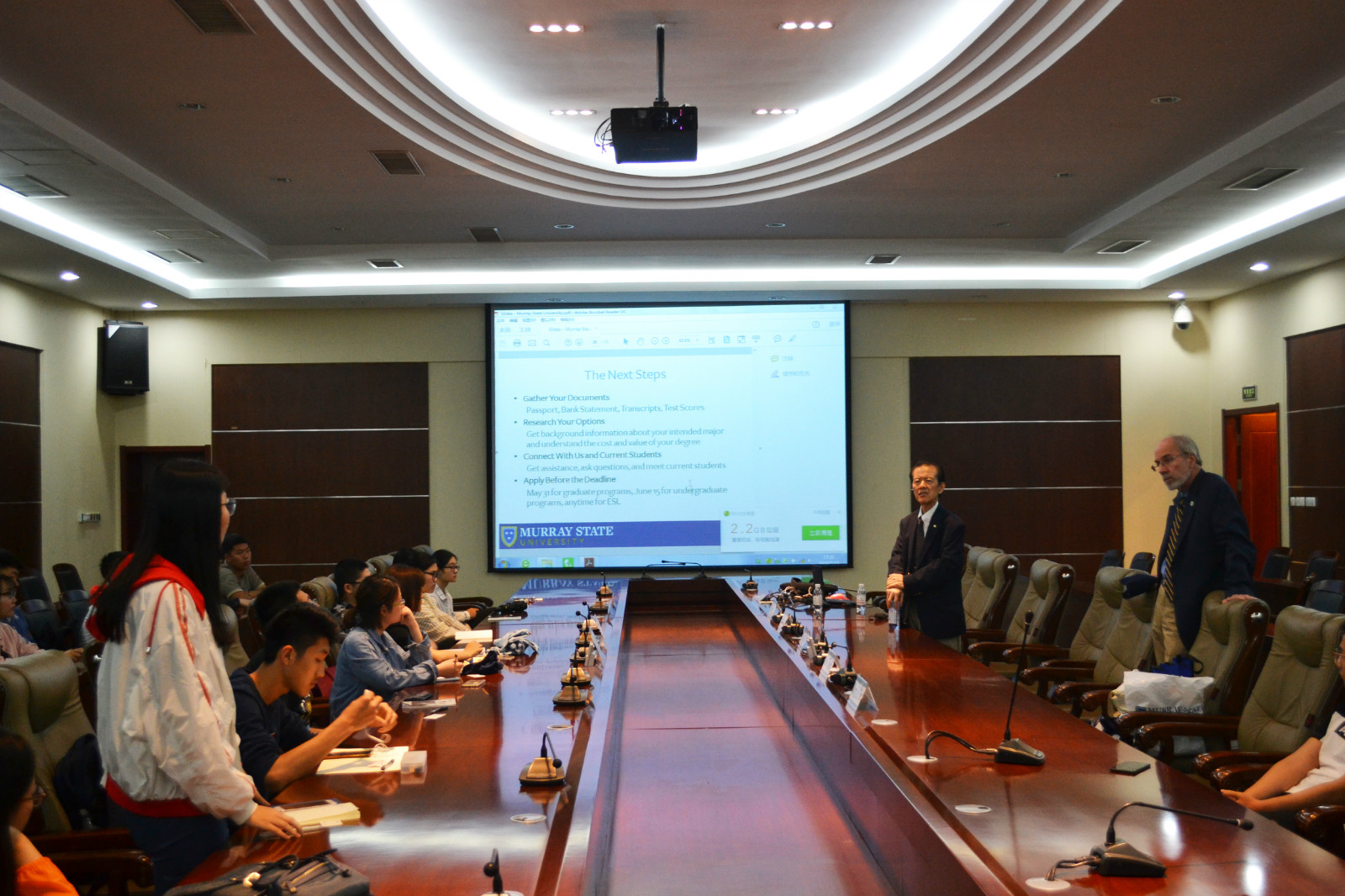 下午,Don Robertson和邹光明在学术会馆会议厅举行了莫瑞州立大学留学宣讲会,介绍了莫瑞州立大学的基本情况,涵盖本硕专业课程设置、学习费用、英语强化项目、校园活动以及生活环境等, 特别介绍了面向留学生的奖学金政策,该政策学费减免力度大,对我校学生开拓国际视野具有重要意义。宣讲结束后,学生积极提问交流,Don Robertson和邹光明共同为学生进行了解答,宣讲会圆满结束。