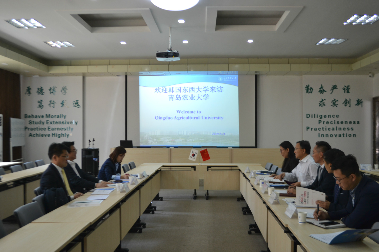 郑丹对来访客人表示欢迎,并向他们介绍了近一年我校在国际交流合作方面取得的各项最新成果,尤其是与韩国各友好院校之间的交流合作情况。