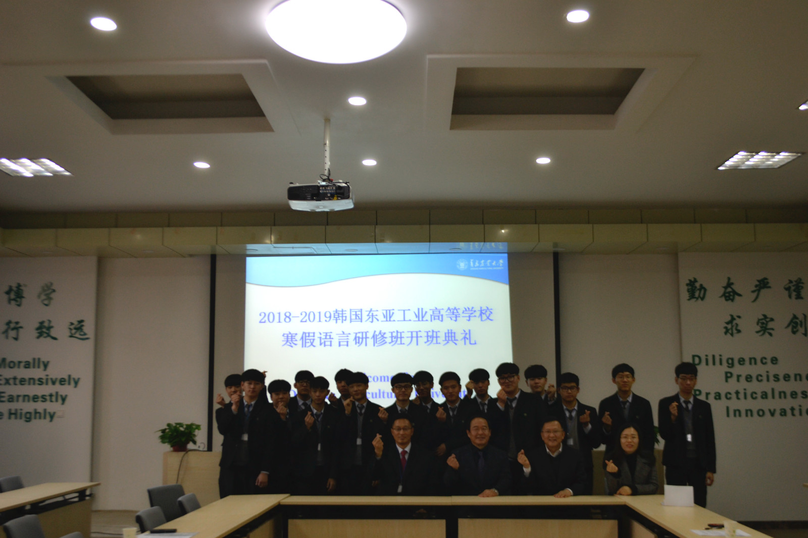 12月24日,韩国东亚工业高等学校寒假语言研修班开学典礼在专家楼举行,韩国东亚工业高等学校教育部部长闵庚禄、太阳成集团tyc9728处长郑丹出席了开学典礼,太阳成集团tyc9728、韩国东亚工业高等学校相关工作人员参加了开学典礼。