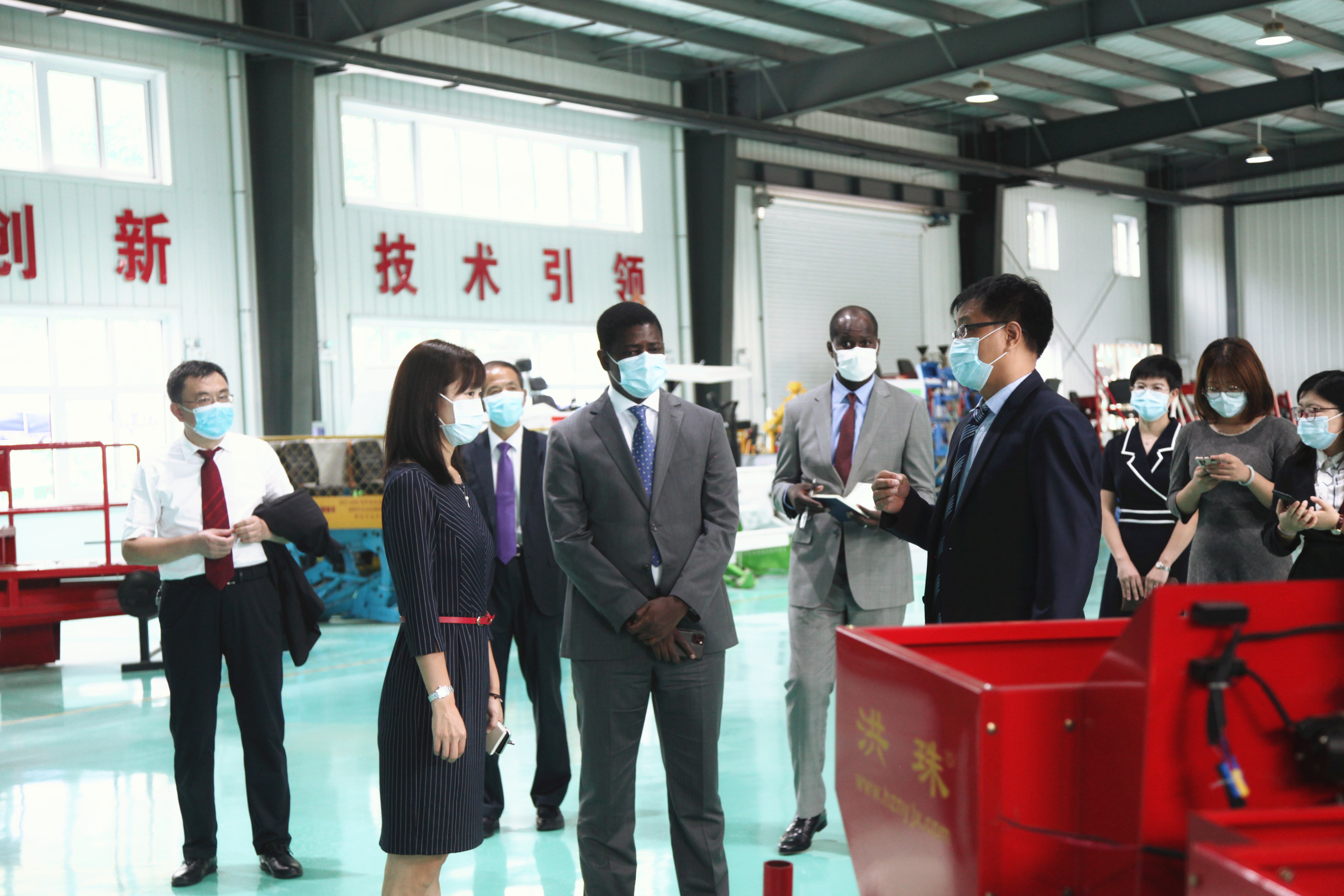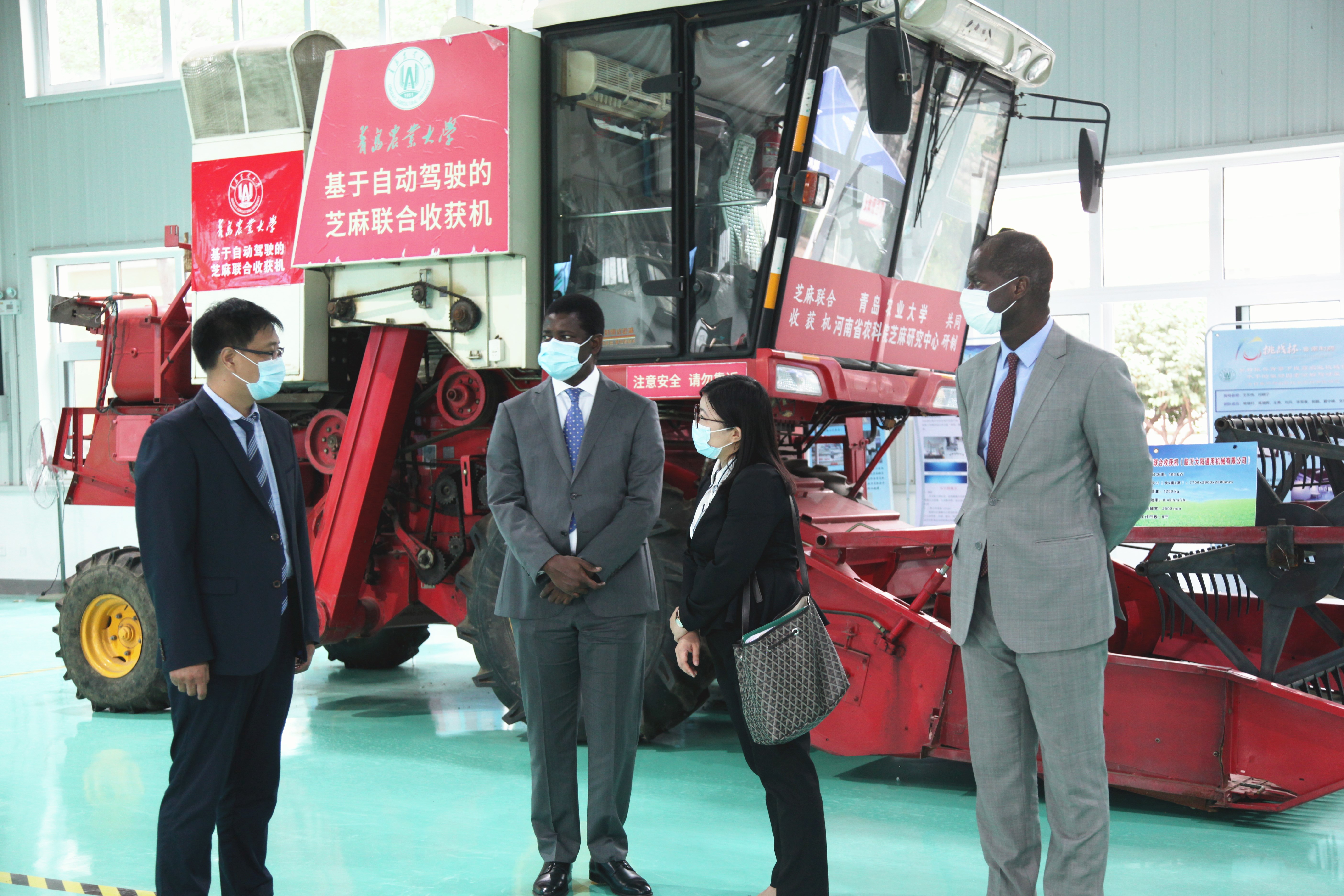 会后,宋希云代表学校为马马杜•恩迪亚耶大使赠送印有学校LOGO的旗帜。原永兵陪同大使一行参观了机电工程学院农机展厅。