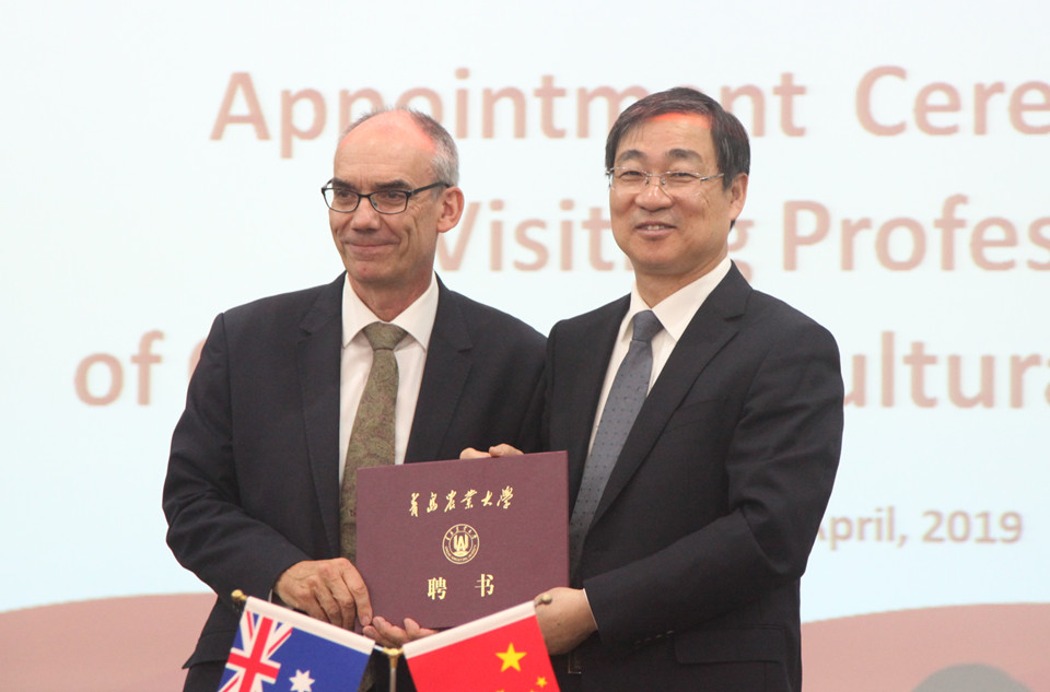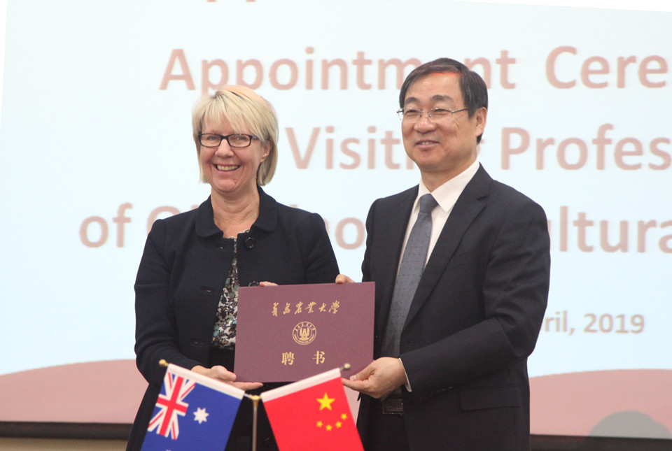 4月16日上午,澳大利亚莫道克大学(Murdoch University)校长Eeva Leinonen教授、副校长David Morrison教授一行来访9728太阳集团并受聘学校客座教授。校长宋希云为两位教授颁发聘书并合影留念。双方在前期合作基础上商讨合作成立中澳农业与环境健康联合研究院。