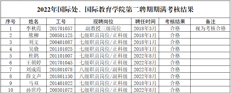 根据《9728太阳集团第二轮岗位设置与聘用实施办法》(青农大校字〔2018〕2号)、《9728太阳集团第二聘期岗位考核办法》(青农大校字〔2018〕3号)、《9728太阳集团第二聘期期满考核工作方案》等文件要求,经个人申报、单位审核、材料公示、单位考核小组评议,现将考核结果进行公示,公示内容如下图。