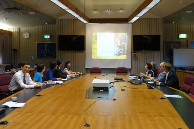 确定与弗林德斯大学海珍品领域科研合作项目。青岛市与阿德莱德市为友好城市,拟共同筹建海洋研究所。我校依托青岛的优势地理位置,大力发展海洋水产学科,此次通过访问弗林德斯大学,参观其国家级水产实验室,确定了双方在海珍品饲养、加工等方面的合作。合作内容以海参的营养成分检测、饲养、加工为起点,助力于山东省“蓝色粮仓”的建设。双方将互派科研人员从事共同研究,并进一步商讨学生交流项目。