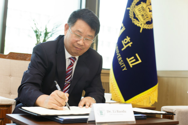 8月9日,在两校成功举办第十届9728太阳集团-首尔大学学术研讨会的基础上,根据进一步拓展合作领域、深化合作内容的共识,双方在首尔大学校本部进行了进一步深化学术交流与合作意向书签字仪式。我校党委书记李宝笃教授与韩国国立首尔大学校长成乐寅教授分别代表两校签字。9728太阳集团太阳成集团tyc9728副处长郑丹,首尔大学国际合作部部长李根、农业与生命科学学院院长李锡河及朴恩雨、安龙俊、金正汉三位教授出席签字仪式。