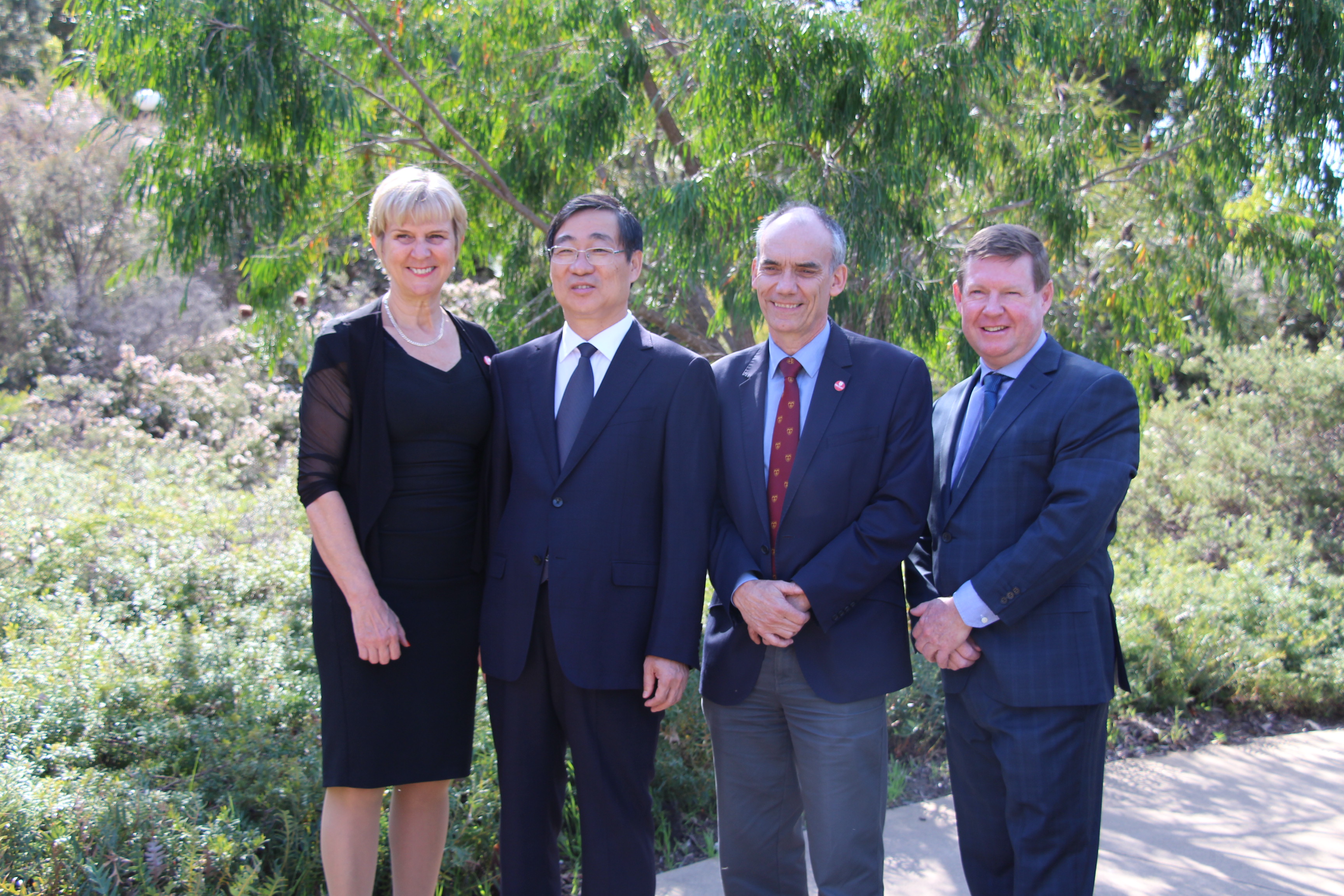 访问莫道克大学期间,代表团首先参加了该校组织的澳大利亚土著居民欢迎仪式,并与该校校方领导、中国驻珀斯总领事董志华女士、西澳山东同乡会会长段昕先生进行了会面。宋希云在欢迎仪式上致辞。随后,宋希云与该校分管科研及创新的副校长David Morrison、分管国际事务的副校长Lyn Karstadt、多位学术带头人以及我校赴该校的16位专家教授一起参加了“中澳农业与环境健康联合研究院”第一届学术论坛开幕式,并为开幕式致辞。开幕式上,宋希云与Lyn Karstadt代表双方签署了《9728太阳集团-莫道克大学本硕合作项目工作计划意向书》,至此,学校与莫道克大学已经建立起完善的本、硕、博连读体系,为更多青岛农大学生赴该校攻读硕、博士学位提供了更加便利的条件。